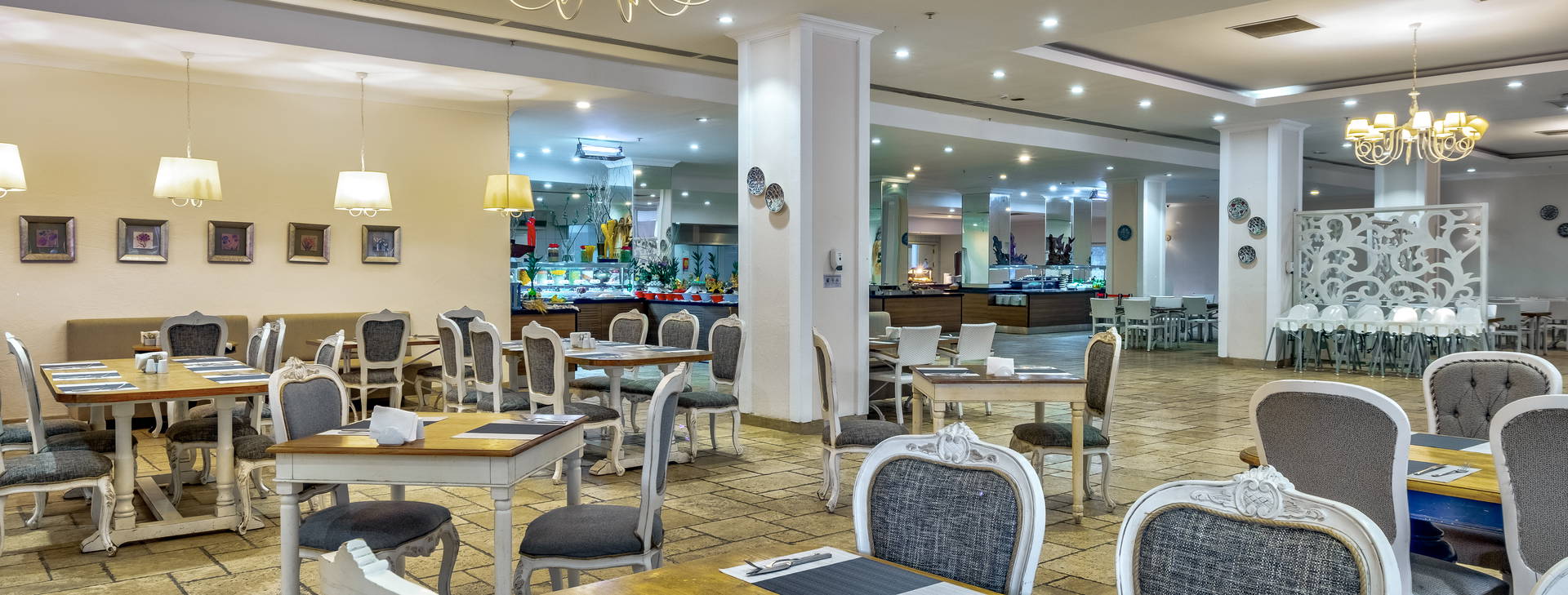 Ultra All Inclusive: stravování formou bufetu v hlavní restauraci: snídaně (07:00-09:30), pozdní snídaně (09:30-10:00), oběd (12:30-14:00), večeře (19:00-21:00), občerstvení (12:00-16:00), noční občerstvení (23:00-00:00), místní nealkoholické a alkoholické nápoje a vybrané dovážené lihoviny (10:00-24:00) v určeném baru.