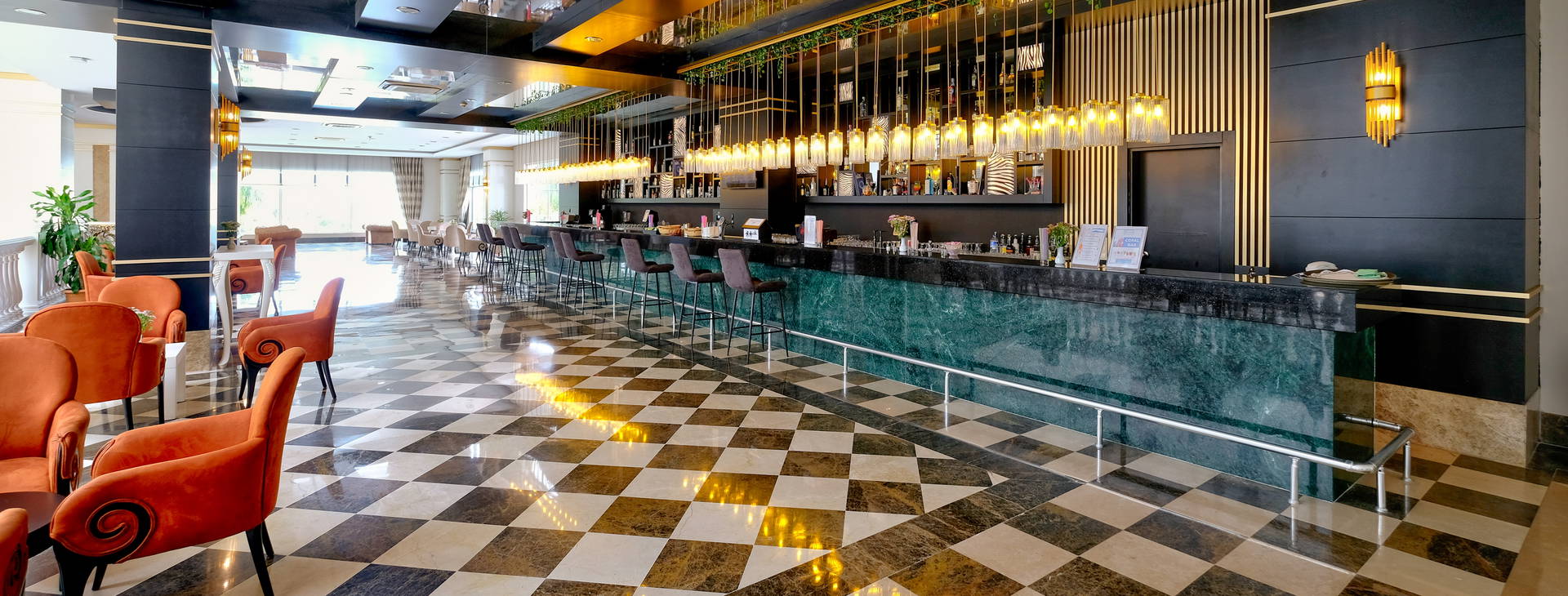 Ultra All Inclusive: snídaně (07:00-10:00), pozdní snídaně (10:00-10:30), obědy (12:30-14:00), večeře (18:30-21:00), noční občerstvení (23:00-24:00), noční bufet (01:00-07:00), velký výběr občerstvení během dne (12:00-15:30), zmrzlina (14:00-17:00), palačinky gözleme (11:00-15:30). Nealkoholické nápoje a místní alkoholické nápoje jsou k dispozici 24 h ve vybraném baru, v ostatních barech během jejich otevírací doby. Za příplatek: dovážené alkoholické nápoje, čerstvé ovocné šťávy.