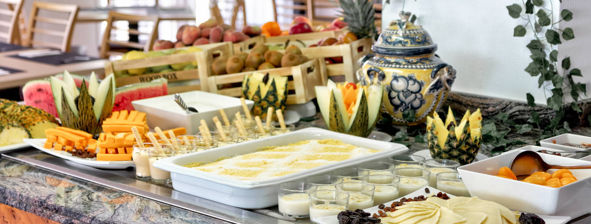 All Inclusive: snídaně (08:00-10:00), pozdní snídaně (10:30-11:30), oběd (13:00-15:00) a večeře (19:30-21:30); občerstvení během dne (11:30-15:30) a palačinky (16:00-17:00); místní alkoholické a nealkoholické nápoje od 10:30-22:30 na místě určeném hotelem.