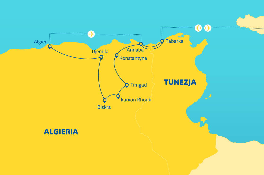 Název zájezdu v polském jazyce: Algieria i Tabarka - starożytna północ i dzikie wybrzeże Tabarki