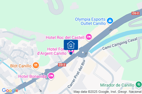 Elegantní hotel oceněný spotřebiteli za vynikající služby, který se nachází v nadmořské výšce cca 1 500 m n. m. v těsné blízkosti sjezdovek - naproti hotelu (cca 75 m) se nachází lyžařské vleky umožňující přístup do největšího lyžařského střediska v Pyrenejích - Grandvalira. Hotel se nachází v centru městečka Canillo s několika obchody a restauracemi. V blízkosti hotelu se nachází také sportovní centrum Palau du Gel s posilovnou, vyhřívaným bazénem, saunou a kluzištěm (za poplatek). V blízkosti hotelu se nachází autobusová zastávka, odkud se dostanete do hlavního města knížectví Andorra la Vella (cca 12 km). Transfer z barcelonského letiště trvá přibližně 3,5 hodiny (cca 210 km).