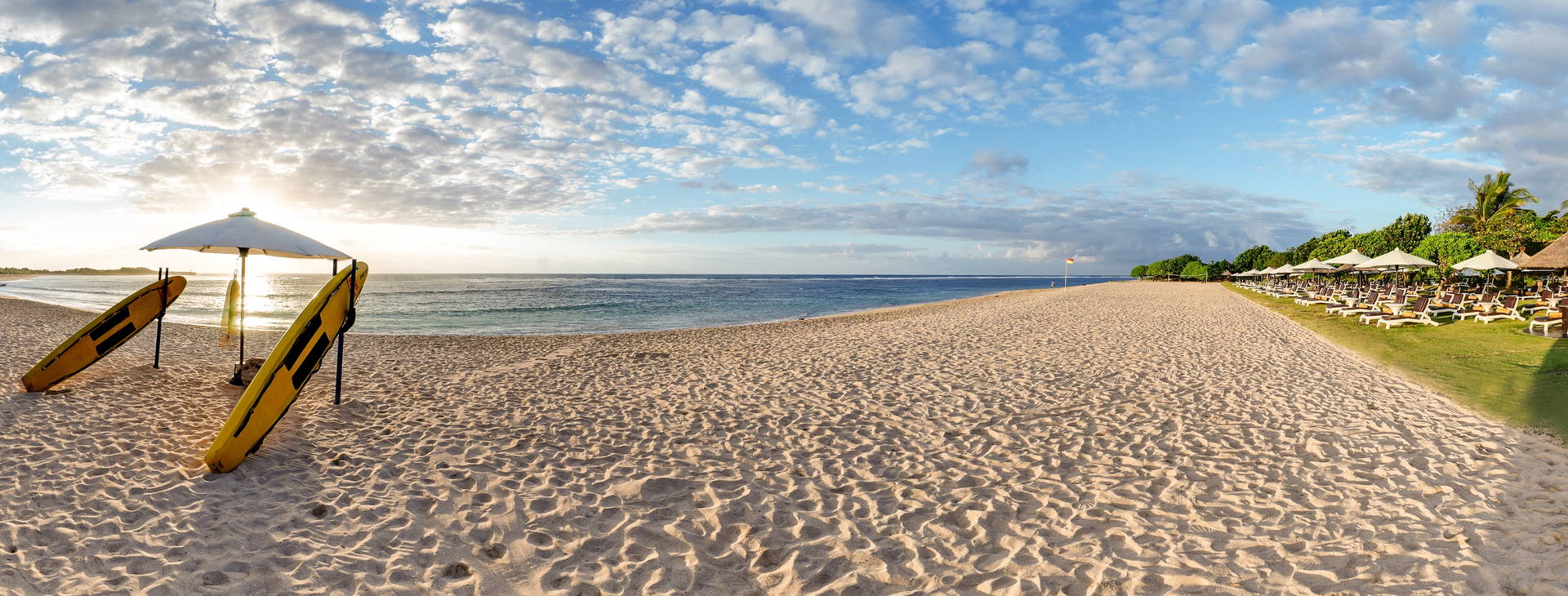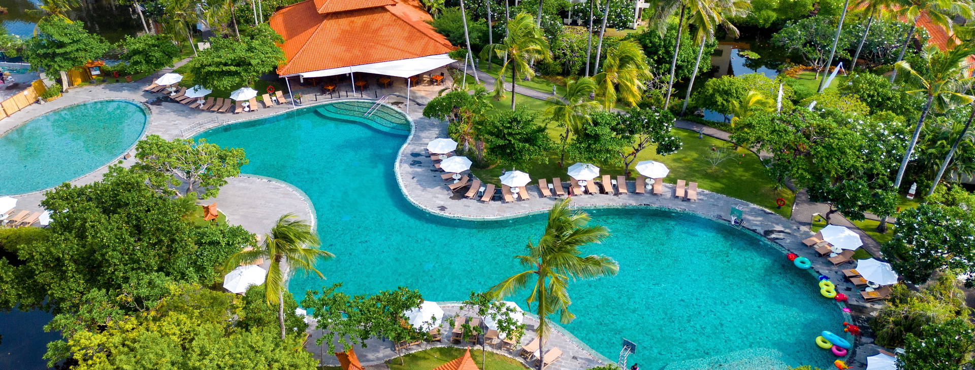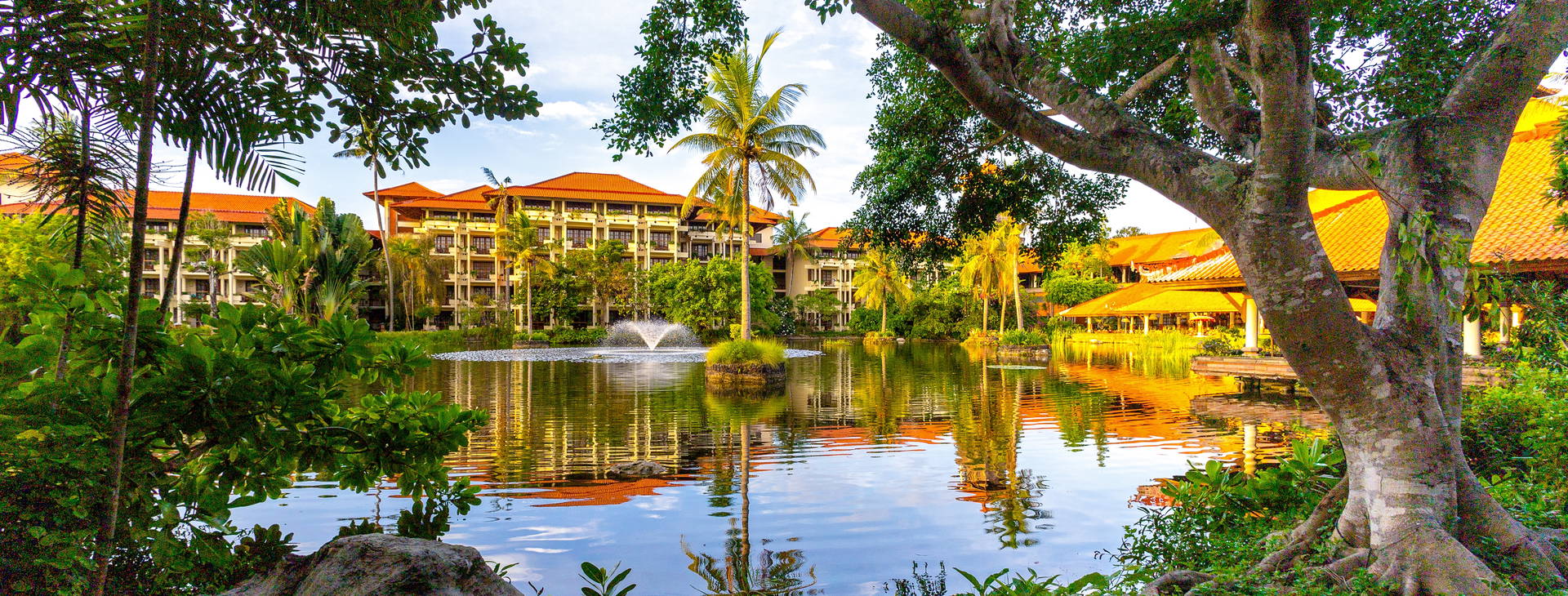 Hotel postavený v tradičním balijském stylu se nachází v Nusa Dua na jižním okraji ostrova. Nusa Dua je považována za nejlepší plážovou lokalitu na Bali a zároveň je vzdálena od hlučných letovisek. Na letiště cca 12 km, do Kuty (s širokou nabídkou obchodů, restaurací, barů a další zábavy) cca 15 km - dojezd taxíkem cca 15 USD. V blízkosti hotelu se nachází 18jamkové golfové hřiště a nákupní centrum Bali Collection s širokým výběrem restaurací.