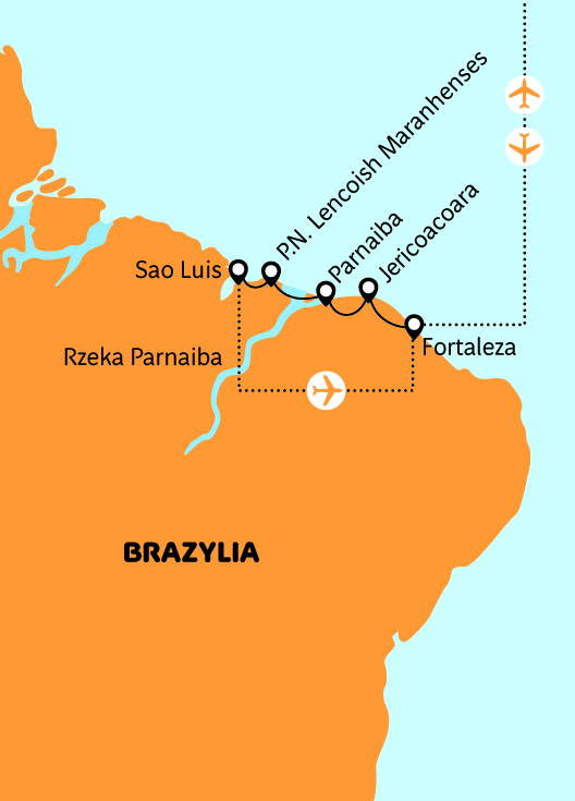 Snídaně, následuje plavba lodí po deltě řeky Parnaiba. Delta Parnaíby je považována za jednu z nejkrásnějších krajin na světě. Je to nejdelší řeka, která se celá nachází na brazilském území, a téměř 40 % zde žijících druhů ryb je endemických. Řeka meandruje a rozděluje se na menší kanály, které svým tvarem připomínají otevřenou dlaň, zatímco krajinu, která ji obklopuje, lze bez váhání nazvat velkým ekologickým chrámem. Následuje přejezd po vodě do Barreirnhas, který bude začátkem naší cesty směrem k brazilské Sahaře. Během cesty terénním vozem budeme obdivovat bujnou vegetaci deštného pralesa, který se rozprostírá na úpatí pohoří Lencois Maranhenses. Ubytování v pousadě v Barreirnhas a přenocování.