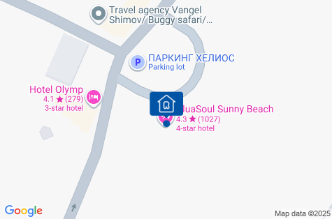 Hotel se nachází na Slunečném pobřeží, jen asi 800 m od centra letoviska s širokou nabídkou restaurací, barů, diskoték a obchodů. Do jednoho z nejstarších bulharských měst (ze seznamu UNESCO) - Nesebaru cca 5 km. Na letiště v Burgasu cca 27 km a na letiště ve Varně cca 102 km.