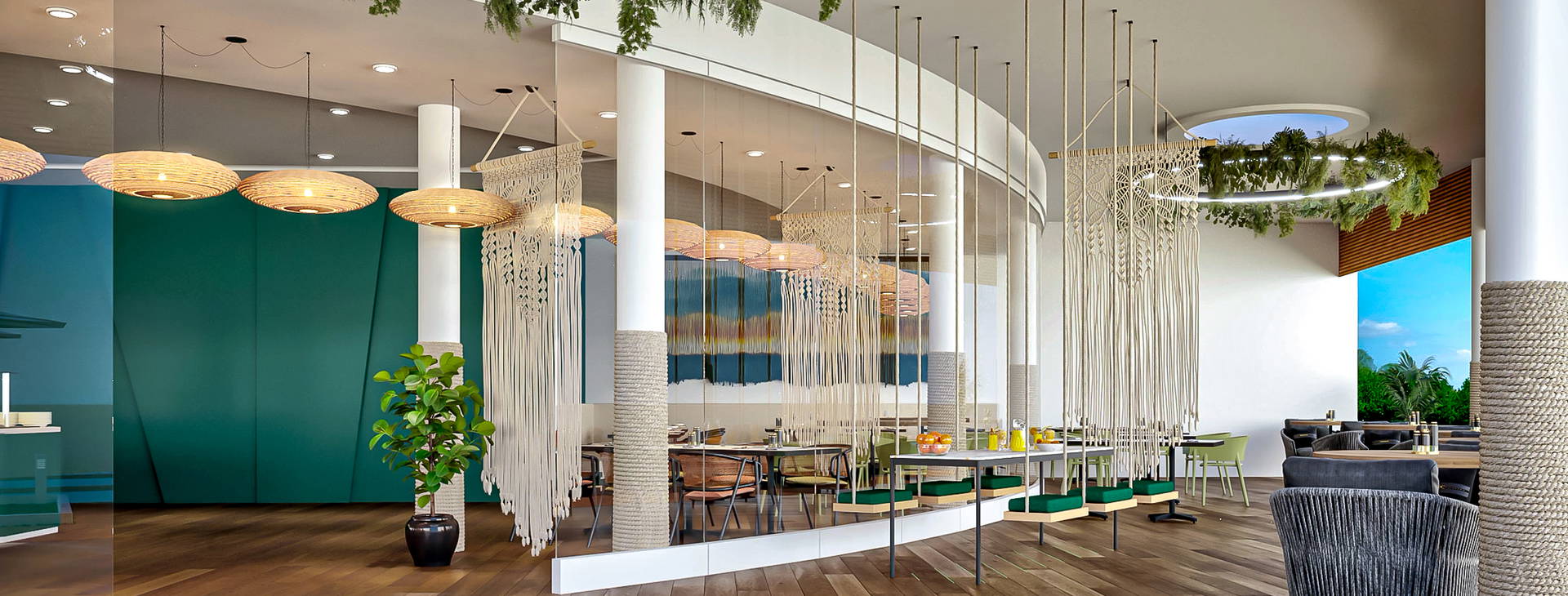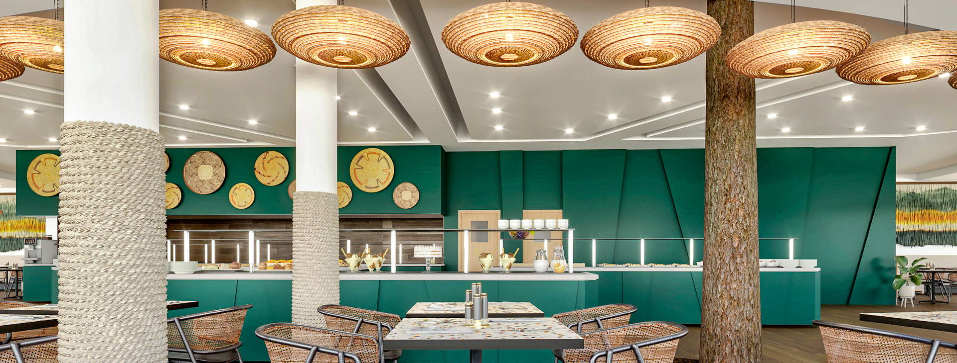 All Inclusive - hostům je k dispozici: hlavní restaurace Terra s mezinárodní kuchyní - snídaně (08:00-10:00) a večeře (18:30-21:30) formou bufetu, restaurace Kentia se zdravým občerstvením - obědy (12:00-17:00):Restaurace Jojo podává asijskou kuchyni - večeře (18:30-21:30) formou bufetu, restaurace Mare Nubium podává místní kuchyni - večeře (18:30-21:30) a'la carte (jedna večeře týdně, nutná rezervace předem). Dále lobby bar Agua (10:00-00:00) a noční klub The Spot (20:00-00:00) s živou hudbou.