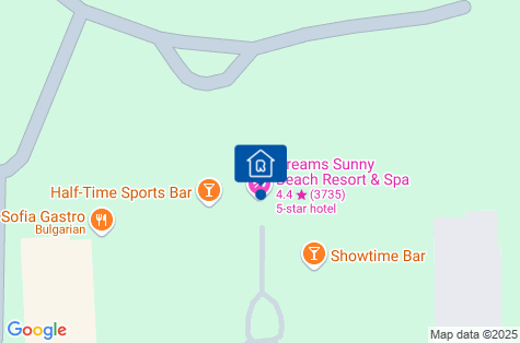 Dreams Sunny Beach Resort & Spa je luxusní hotel, který se nachází v klidné části Slunečného pobřeží u Černého moře. Nachází se asi 4 km od centra Slunečného pobřeží, asi 30 km od letiště Burgas a asi 100 km od letiště Varna.