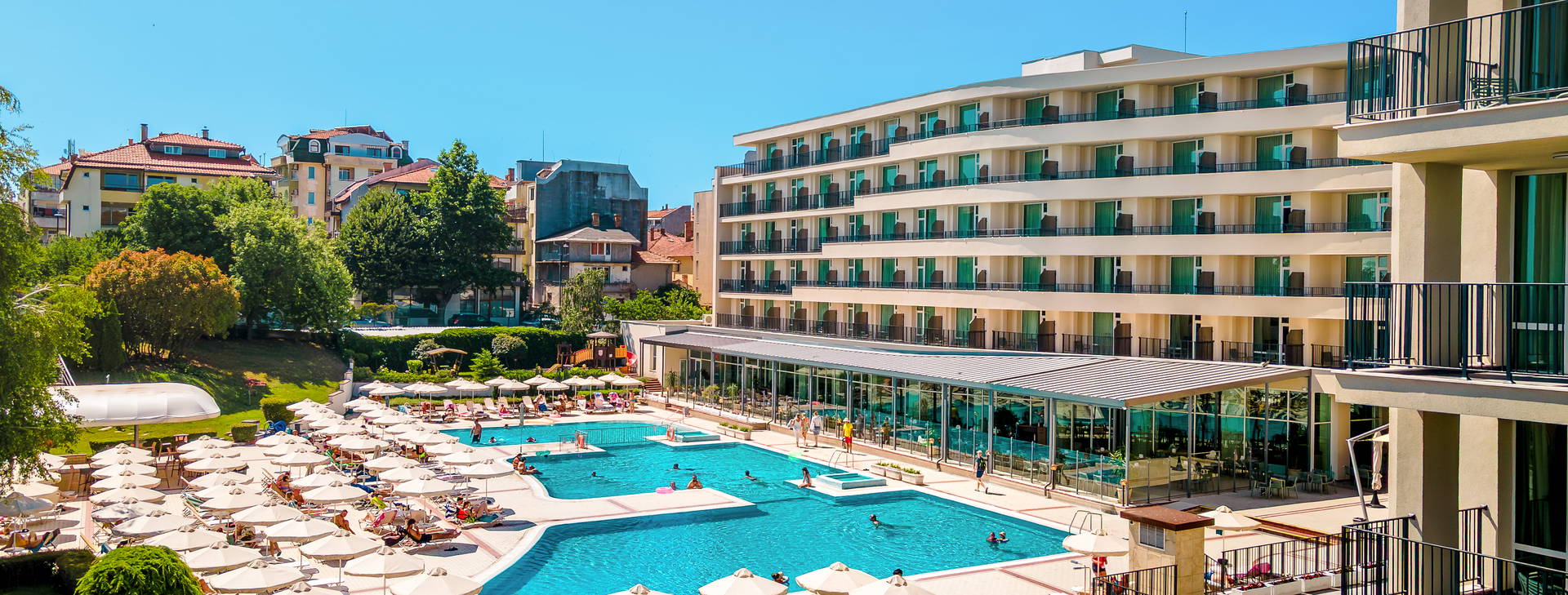 Luxusní hotel v blízkosti dvou černomořských letovisek (Nesebar a Slunečné pobřeží) s velmi dobrými službami - doporučujeme náročným klientům, kteří mají rádi komfort dovolené All Inclusive.