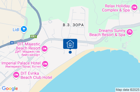 Hotel je součástí resortu Helena a nachází se přímo na pláži v severní části Slunečného pobřeží. Je oázou klidu a harmonie. Architektonicky se vyznačuje věží se čtyřmi unikátními hodinami. Všechny budovy jsou od sebe odděleny přírodním potokem a malebnými mosty ze dřeva a kamene. Do centra města jsou to přibližně 3 km, nejbližší autobusová zastávka je vzdálená 500 m.