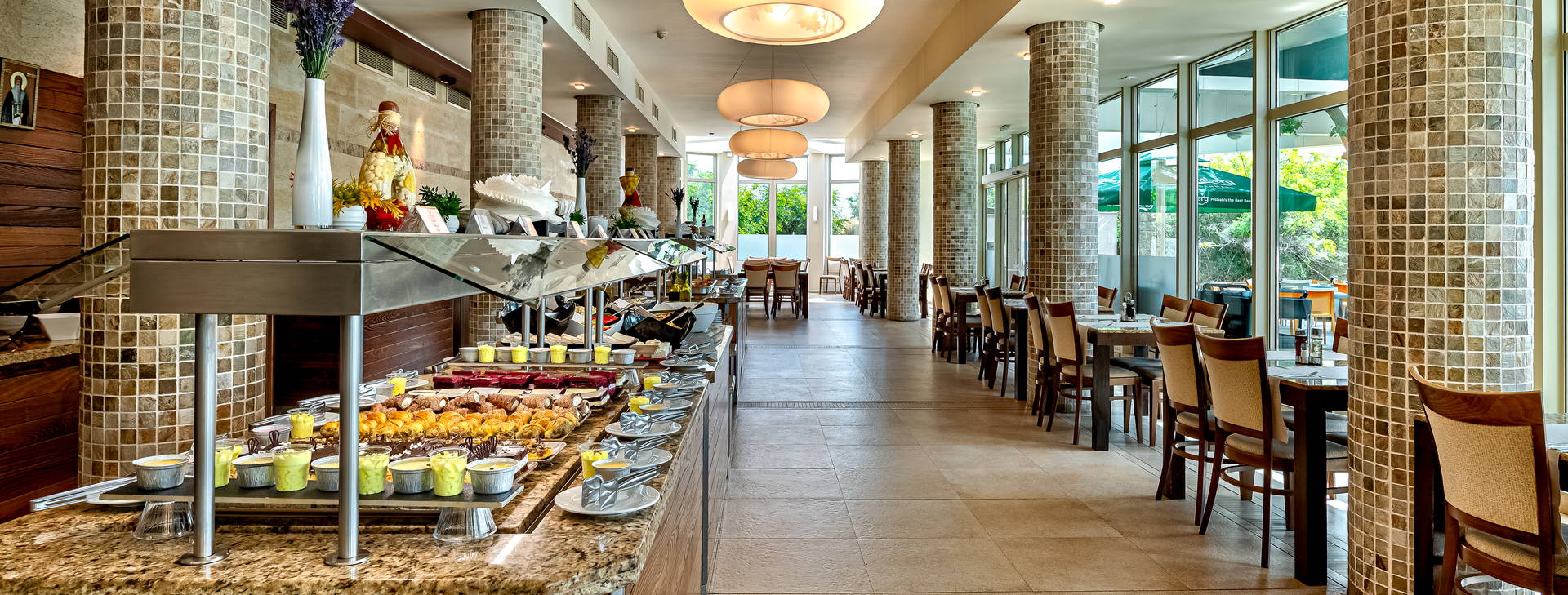 All Inclusive zahrnuje: snídaně (7:30-10:00), obědy (12:00-14:00) a večeře (18:00-21:00) formou bufetu (u večeře a oběda je k dispozici vegetariánské menu). V hlavní restauraci je k dispozici také pozdní občerstvení (10:30-11:00) a bulharská zmrzlina. K dispozici je také bar u bazénu s nabídkou teplého občerstvení (14:30-16:00) a teplých nápojů (káva, čaj), bulharských lihovin, nealkoholických nápojů, místních piv a vín (09:00-23:00). Nápoje jsou k dispozici také v lobby baru (09:00-23:00). Hotel si vyhrazuje právo na změnu rozsahu služeb zahrnutých do formule All Inclusive (např. časy podávání).
