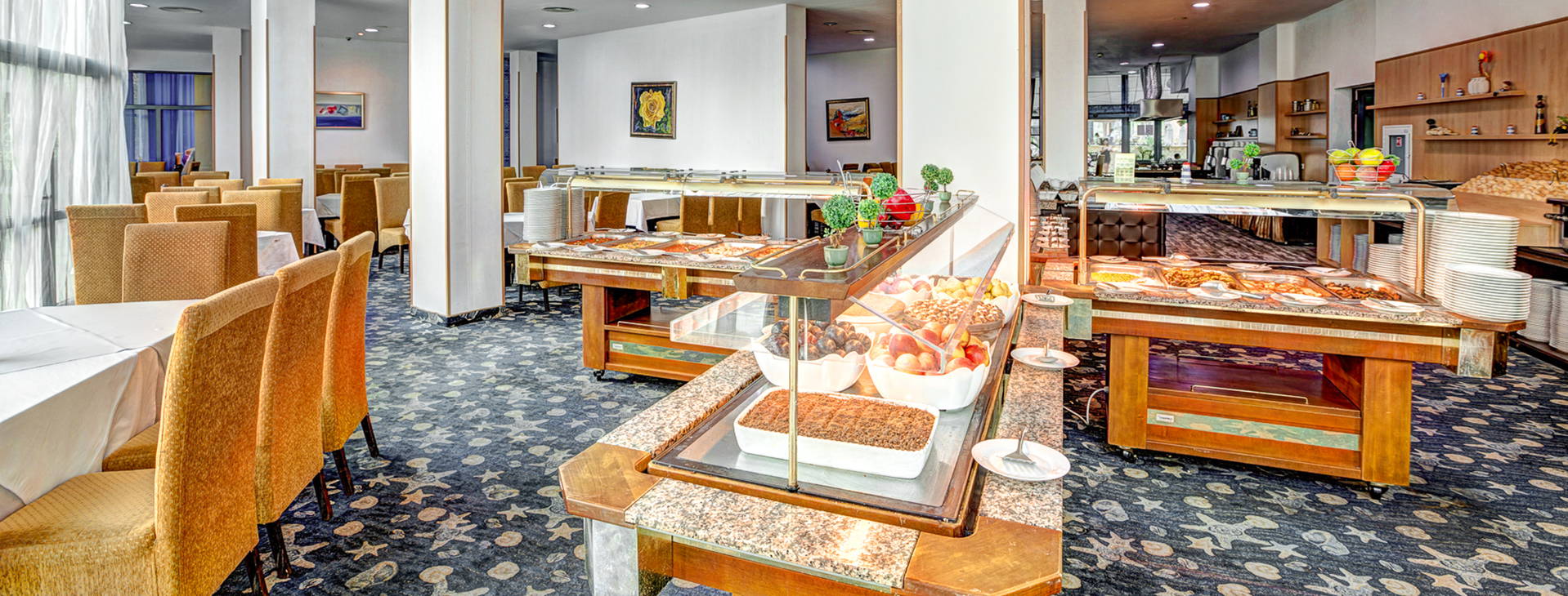 Hotel svým hostům nabízí nepřetržitě otevřenou recepci, 4 výtahy, prostornou vstupní halu a úschovnu zavazadel. Hlavní restaurace formou bufetu s nabídkou regionální a mezinárodní kuchyně, 3 bary, diskotéka, sluneční terasa, venkovní bazén s odděleným dětským bazénem, částečně krytý bazén (s nekrytou částí) s lehátky a slunečníky u bazénu, obchod, směnárna, parkoviště. Za poplatek: plážové osušky, prádelna, půjčovna aut a kol.