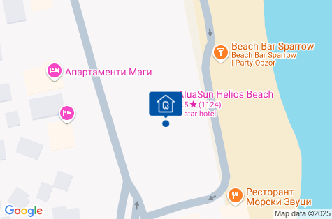 AluaSun Helios Beach se nachází asi 300 m od centra města Obzor, asi 61 km od letiště Burgas a asi 65 km od letiště Varna.