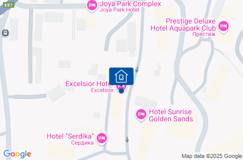 Excelsior je 4hvězdičkový hotel, který byl v roce 2021 kompletně zrekonstruován. Nachází se v centrální části Zlatých písků, na hlavní promenádě, 300 m od centra a pláže. Je obklopen zelení a nádherným výhledem na moře a svým hostům nabízí pohodlí a skvělou atmosféru. V blízkosti hotelu se nacházejí obchody, kluby, banka a autobusová zastávka. Nachází se asi 26 km od letiště Varna a asi 139 km od letiště Burgas.