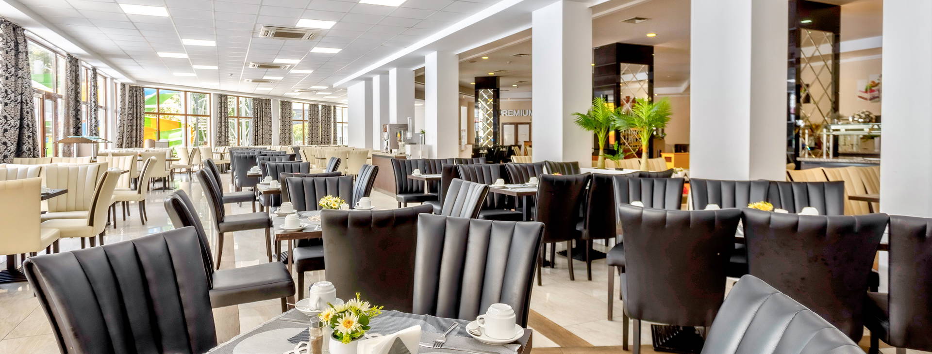 Snídaně v hlavní restauraci formou bufetu. Jednou týdně se pořádá středomořský večer - bulharský večer nebo grilování.