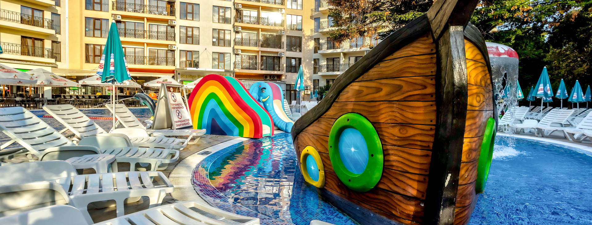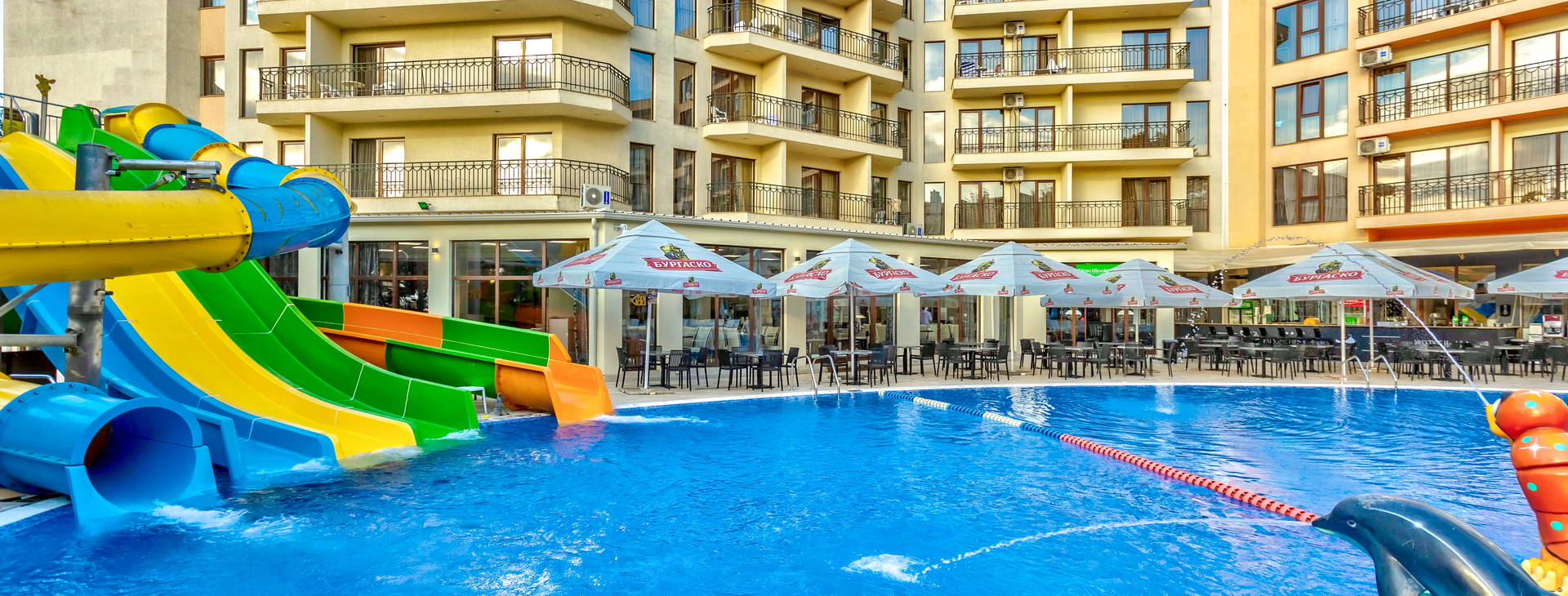 Skvělá poloha v centru Zlatých písků vám umožní využívat všechny atrakce tohoto letoviska. Doporučujeme jej proto pro páry. Vzhledem k hotelovému aquaparku a animačním zařízením jej vřele doporučujeme také rodinám s dětmi.