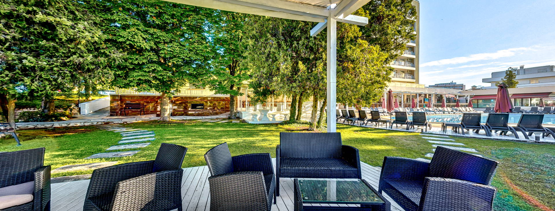 Čtyřhodinová recepce, venkovní bazén s brouzdalištěm pro děti, restaurace: hlavní restaurace s velkou terasou s výhledem do zahrady, kde se podávají bulharské speciality, lobby bar s přístupem k bazénu a bar u bazénu (vyloučeno z možnosti All Inclusive). Dále: půjčovna aut, dětské hřiště, prádelna, trezory, směnárna, obchod se suvenýry. Hotel přijímá také kreditní karty: Visa, Maestro, Mastercard.