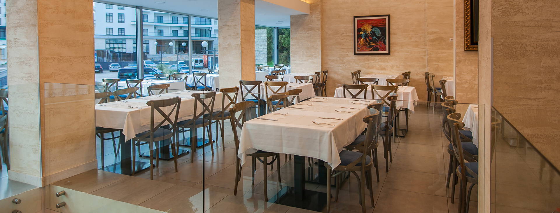 All Inclusive light: snídaně (07.00-10.00 bufet), oběd (12.30-14.00 bufet) a večeře (19.00-21.00 bufet). Během oběda a večeře se podávají neomezené množství nealkoholických a alkoholických nápojů: 1 místní pivo nebo 1 sklenka vína. Každý klient navíc obdrží 2 láhve vína jako dárek na uvítanou.
