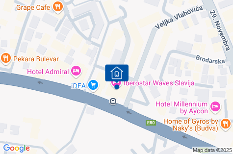 Nový elegantní hotel se nachází na velmi atraktivním místě - v blízkosti centra Budvy (méně než 1 km). Do nejbližších restaurací, barů a nákupního centra dojdete pěšky za 10-15 minut. V blízkosti hotelu se nachází také autobusová zastávka. Vodní park Aqua Park Budva je vzdálen přibližně 3 km a letiště Tivat 24 km od hotelu.