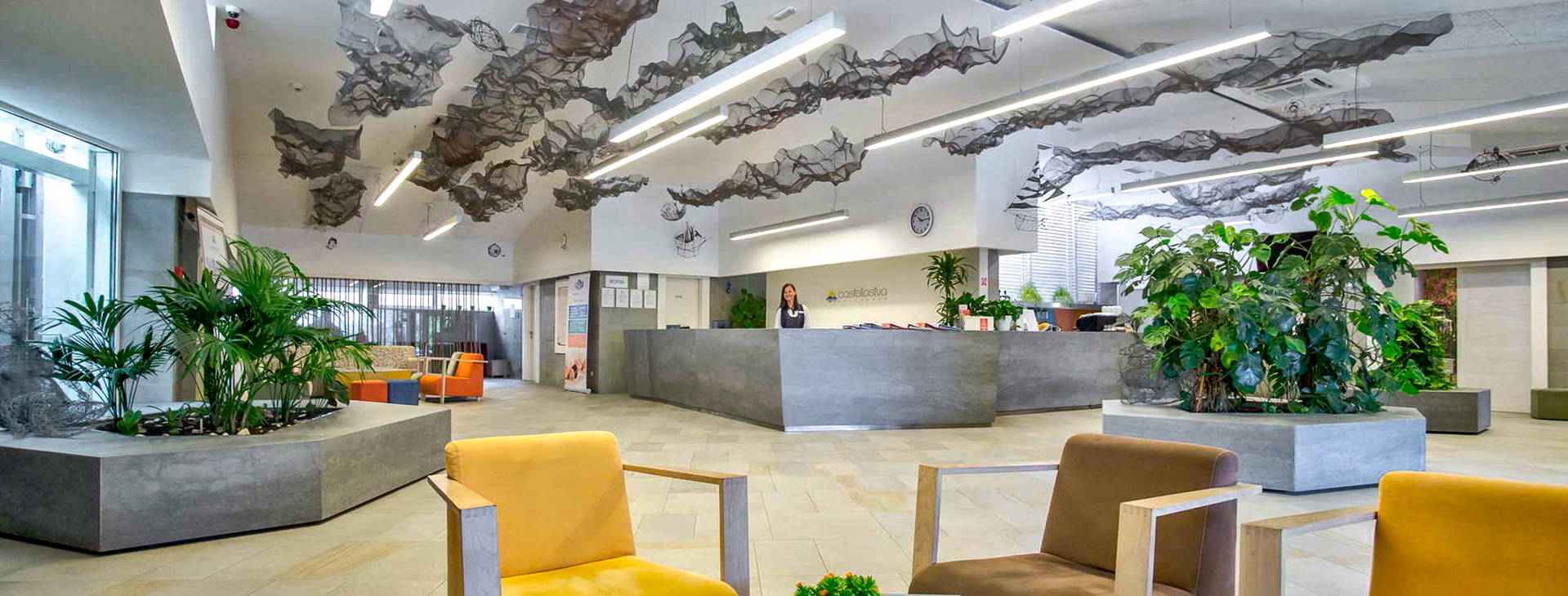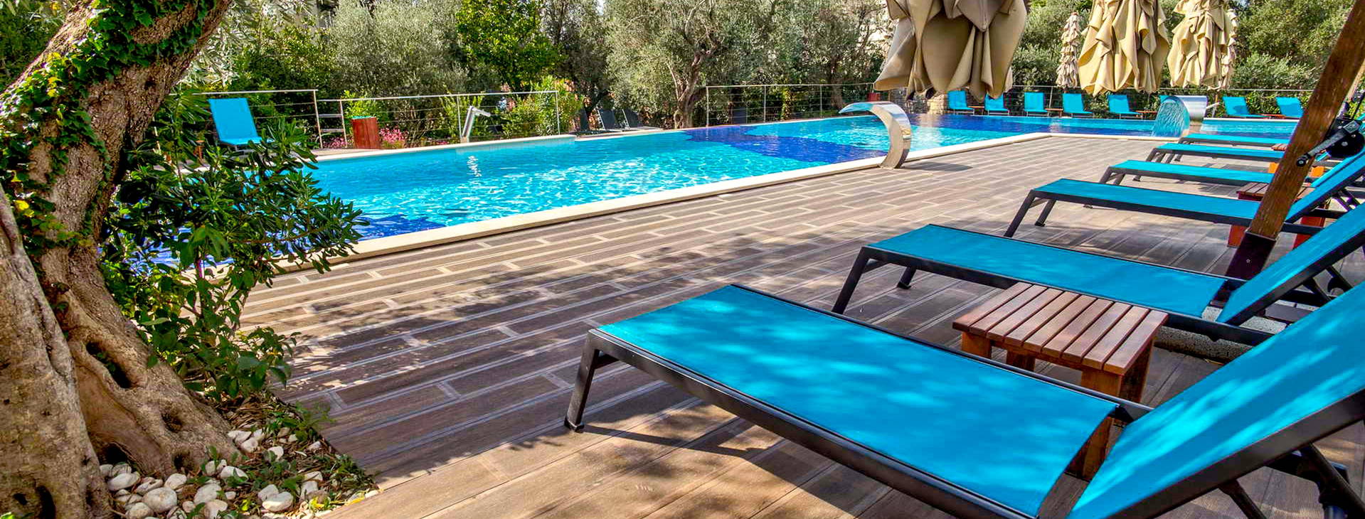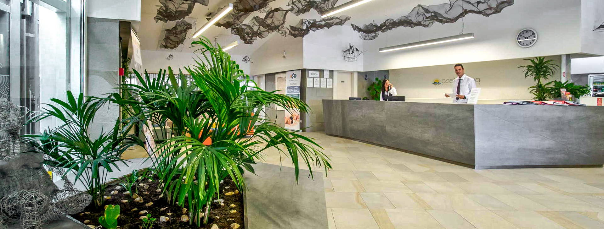 24hodinová recepce s lobby, restaurace s upravenou terasou, kavárna se sluneční terasou, výtahy, venkovní bazén (sladká voda) s oddělenou mělkou dětskou částí a vířivkou, bar u bazénu, parkoviště.
