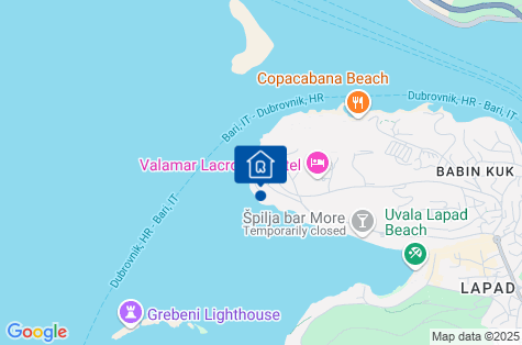 .Hotel se nachází na oblázkové pláži s terasami na opalování. Přibližně 500 m od hotelu se nachází největší oblázková pláž v Dubrovníku. Lehátka na pláži - zdarma.