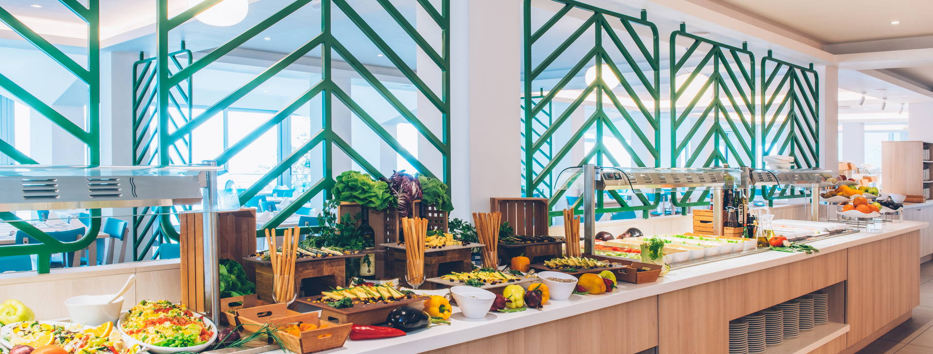 All Inclusive: snídaně (7:00-10:00), oběd (12:00-14:00), večeře (18:30-21:30) formou bohatého bufetu. Snack bar nabízí občerstvení a navíc v určených časech předváděcí vaření a sladkosti (zmrzlina, palačinky, dorty). Nealkoholické a alkoholické nápoje, káva a čaj se podávají ve vybraných hotelových barech (10:00-22:00).