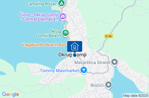 Objekt se nachází ve městě Trogir na ostrově Čiovo. Čiovo je malebný ostrov, který je s Trogirem spojen mostem (lze se na něj dostat vodním taxi cca 2 EUR/osoba nebo pěšky cca 10 minut). Ve vzdálenosti 300 m se nachází Okrug Gornji, tradiční dalmatská vesnice, kde najdete velké množství restaurací, kaváren, konob a nejznámější pláž na ostrově Čiovo s bary, kavárnami a centrem vodních sportů. Transfer z letiště v Zadaru do hotelu trvá asi 1 h, transfer z letiště v Dubrovníku do hotelu trvá asi 5 h. Autobusová zastávka se nachází 200 m od apartmánů. Díky své poloze v blízkosti Trogiru je výbornou základnou pro poznávání Trogiru, Splitu a vodopádů Krka.