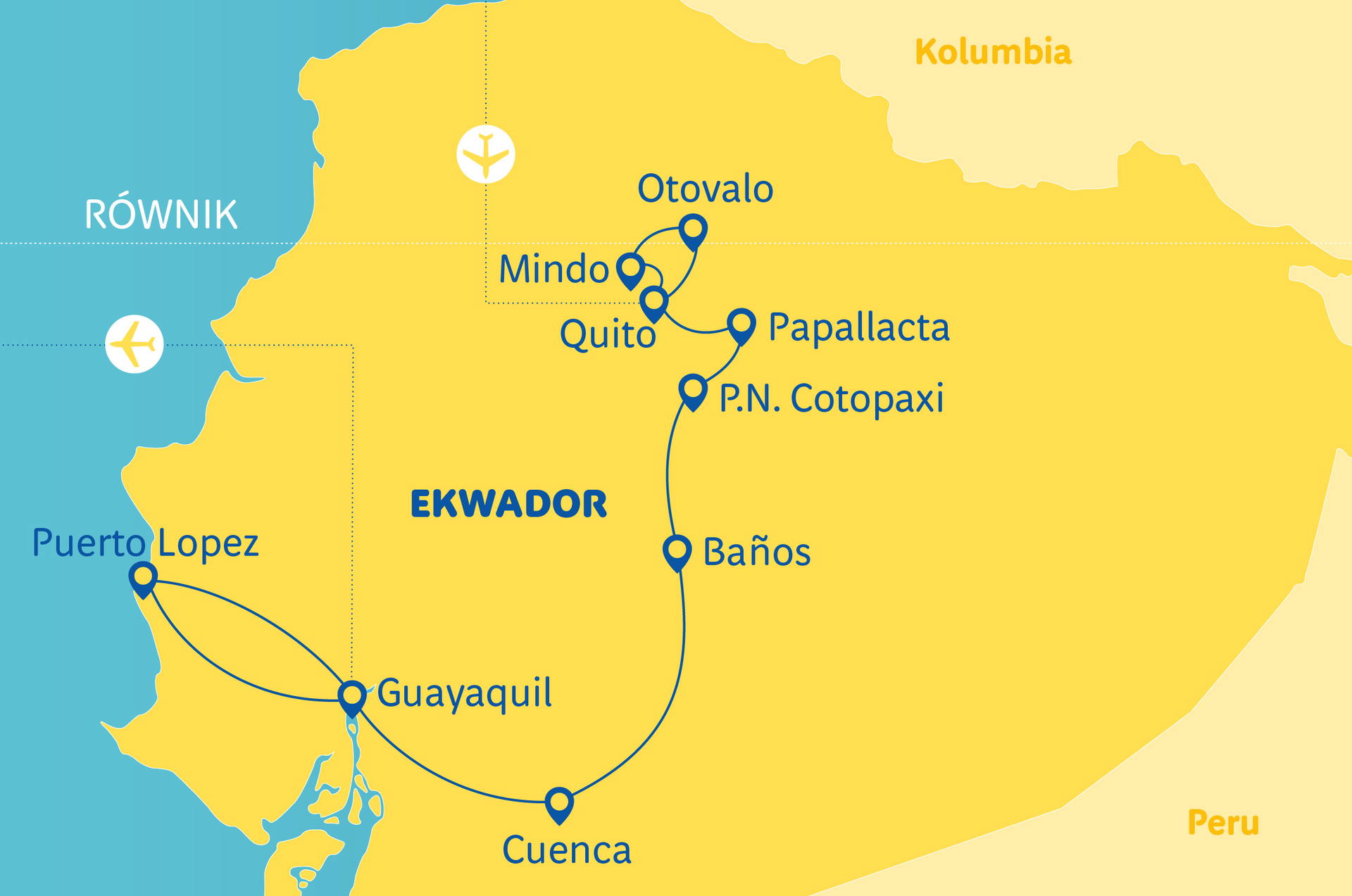 Po snídani přejezd do Guayaquilu, transfer na letiště a zpáteční let do Polska (s přestupem v některém z evropských přístavů).