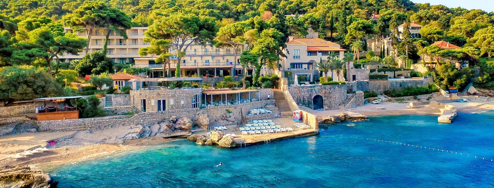 Hotel se nachází v Plat, v zátoce Župa Dubrovačka, v jižní Dalmácii. Je to krásné a klidné místo, ideální pro osoby hledající klidnou dovolenou. V zátoce se nachází komorní pláž obklopená přírodou. Stojí za to navštívit nedaleký Dubrovník (cca 10 km) a podívat se na cenné památky zapsané na Seznam světového dědictví UNESCO. Plat je také ideálním výchozím bodem pro objevování Černé Hory, např. Kotoru. Hotel se nachází cca 1 km od hlavní silnice. Letiště je vzdáleno cca 9 km od hotelu, transfer trvá cca 20 minut.