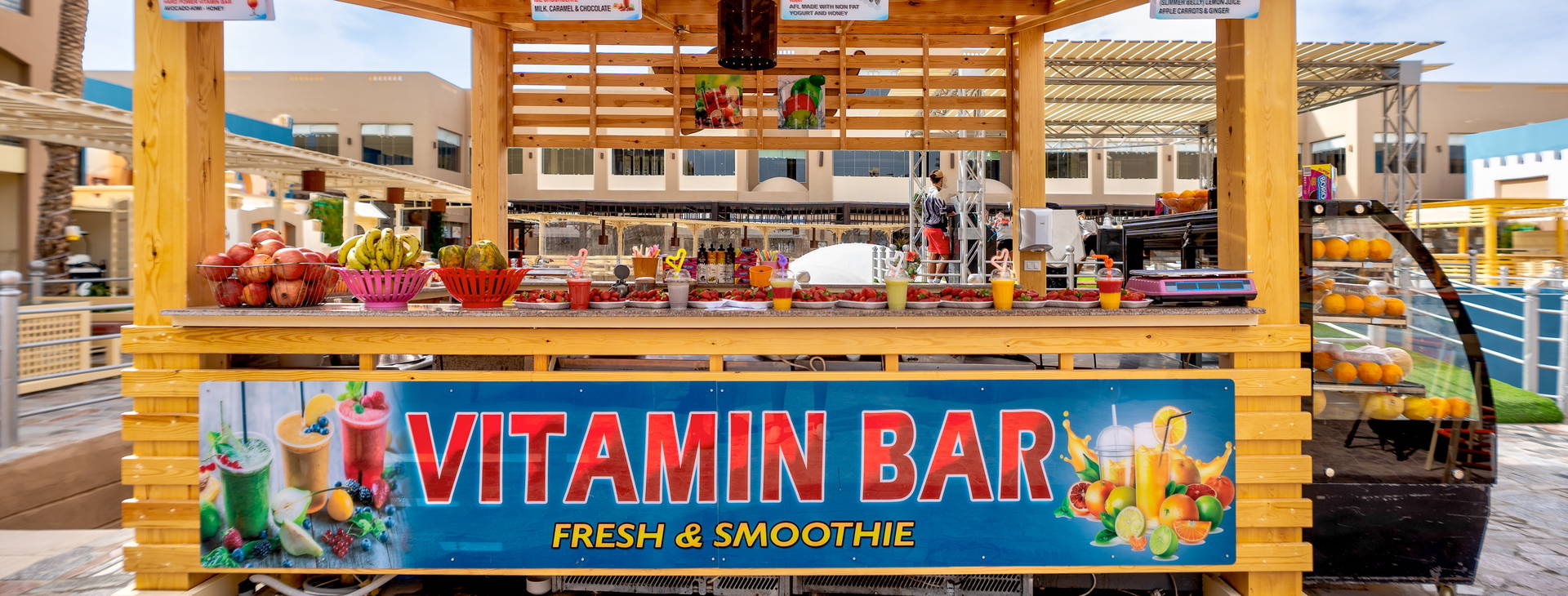 All-Inclusive formou bufetu zahrnuje: snídani v hlavní restauraci Panorama Sun Rise (07:00-10:00), pozdní snídani v baru na terase (10:00-12:00), oběd v restauraci na pláži, čínské a italské restauraci (13:00-15:00), občerstvení v restauraci na pláži (15:30-17:00) a večeři v restauraci Panorama Sun Rise (19:00-21:30), čínské a italské restauraci (19:00-21:00). Kromě toho 6 barů: Bar Cafe, Terrace Bar, Pool Bar Una, Pool Bar Tre, Aqua Park Bar a Beach Bar, kde se podávají místní alkoholické a nealkoholické nápoje.