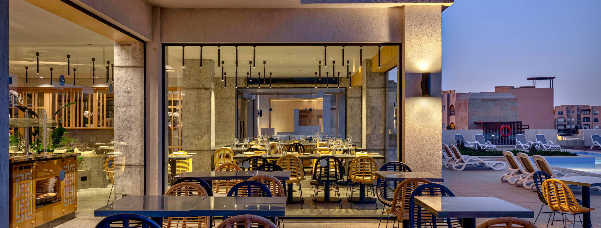 Nabídka All Inclusive zahrnuje: snídani (7:00-10:00), oběd (13:00-15:00) a večeři (18:00-21:00) v hlavní restauraci The Butler. Dále občerstvení (10:30-11:30 a 15:00-17:00) v lobby baru a zmrzlinu (15:30-17:00) v baru u bazénu. Místní alkoholické a nealkoholické nápoje v barech: Na pláži (10:00-23:00), u bazénu (10:00 až do západu slunce) a na pláži (10:00 až do západu slunce). Za příplatek: energetické nápoje, prémiové pivo a víno, čerstvě vymačkané džusy, speciální čaj, espresso, turecká káva, irská káva, lahve vína a zmrzlina Movenpick.