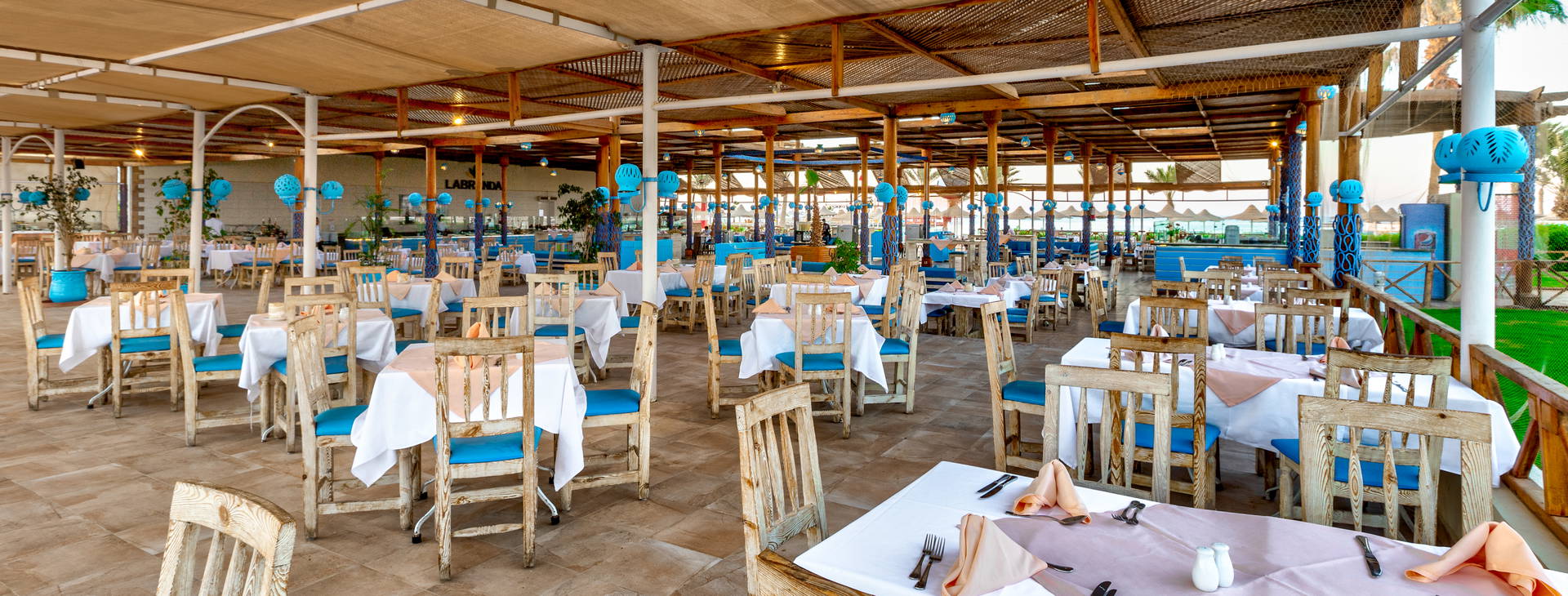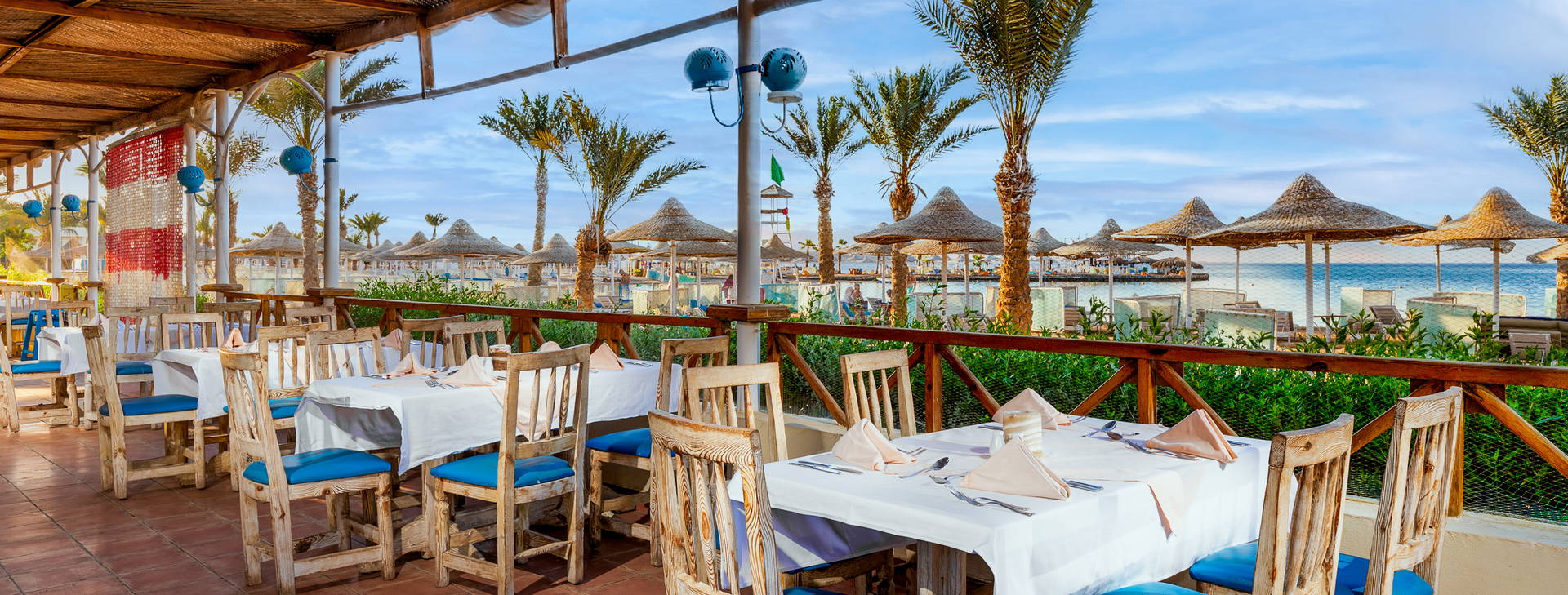 All inclusive: snídaně (6:30-11:00) formou bufetu v hlavní restauraci, obědy (12:00-15:00) formou bufetu v restauraci Makadi Beach Art Deco a večeře formou bufetu nebo a'la carte ve vybrané restauraci (hlavní, Makadi Beach Art Deco nebo Oriental Grill House - nutná rezervace předem). Během dne káva a zákusek (10:00-12:00), občerstvení (15:00-17:00) a vybrané místní alkoholické a nealkoholické nápoje v určených barech (10:00-24:00, od 00:00-10:00 všechny nápoje za příplatek). Nabídka All Inclusive nezahrnuje čerstvě vymačkané džusy a dovážené alkoholické nápoje. Hotel si vyhrazuje právo na změnu rozsahu služeb zahrnutých do formule all inclusive (např. časy podávání).