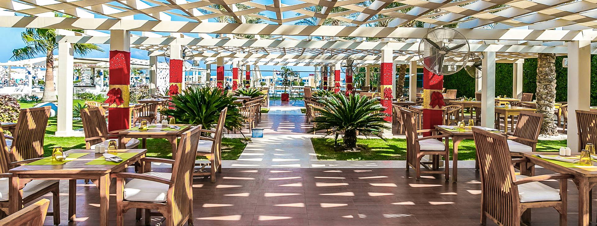 Ultra All Inclusive: snídaně (7:00-11:00), oběd (12:30-15:00), večeře (19:00-21:30), pozdní večeře (23:30-01:00) - formou bufetu v hlavní restauraci, lehké občerstvení během dne v barech a na pláži, některé dovážené alkoholické nápoje, místní alkoholické (rum, brandy, gin, whisky, víno) a nealkoholické nápoje, čaj, káva, pivo, džusy podávané v určených barech (lobby bar - 24 hodin denně; bar na pláži - 10:00-17:00). Jednou během pobytu možnost večeře v restauraci Bella nebo Mandarin (nápoje za příplatek, nutná předchozí rezervace).