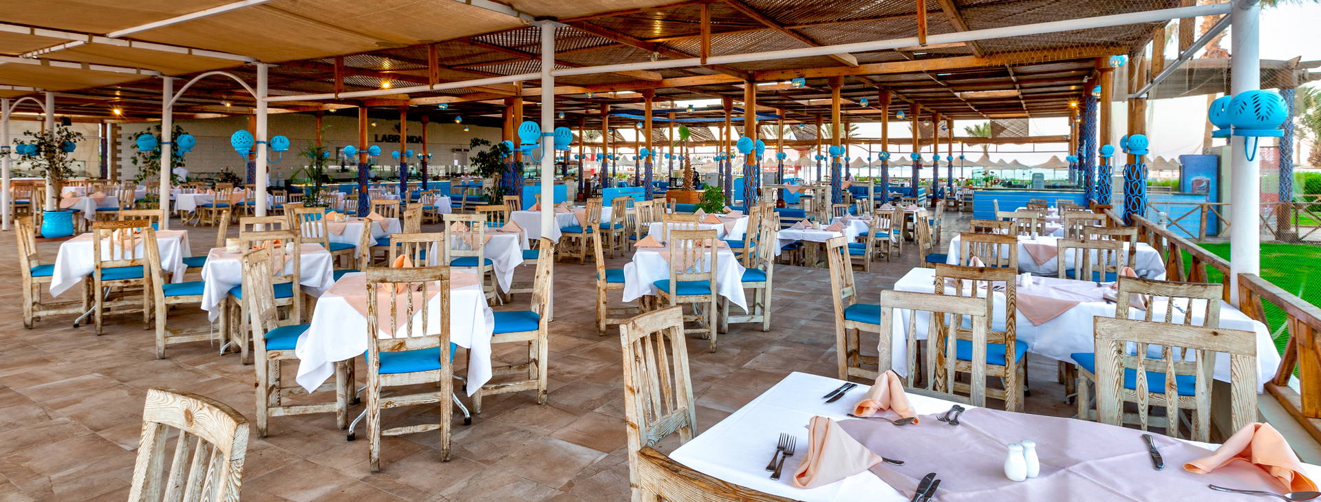 All inclusive: snídaně (6:30-11:00) formou bufetu v hlavní restauraci, obědy (12:00-15:00) formou bufetu v restauraci Makadi Beach Art Deco a večeře formou bufetu nebo a'la carte ve vybrané restauraci (hlavní, Makadi Beach Art Deco nebo Oriental Grill House - nutná rezervace předem). Během dne káva a zákusek (10:00-12:00), občerstvení (15:00-17:00) a vybrané místní alkoholické a nealkoholické nápoje v určených barech (10:00-24:00, od 00:00-10:00 všechny nápoje za příplatek). Nabídka All Inclusive nezahrnuje čerstvě vymačkané džusy a dovážené alkoholické nápoje. Hotel si vyhrazuje právo na změnu rozsahu služeb zahrnutých do formule all inclusive (např. časy podávání).