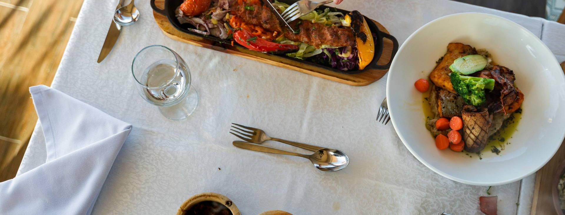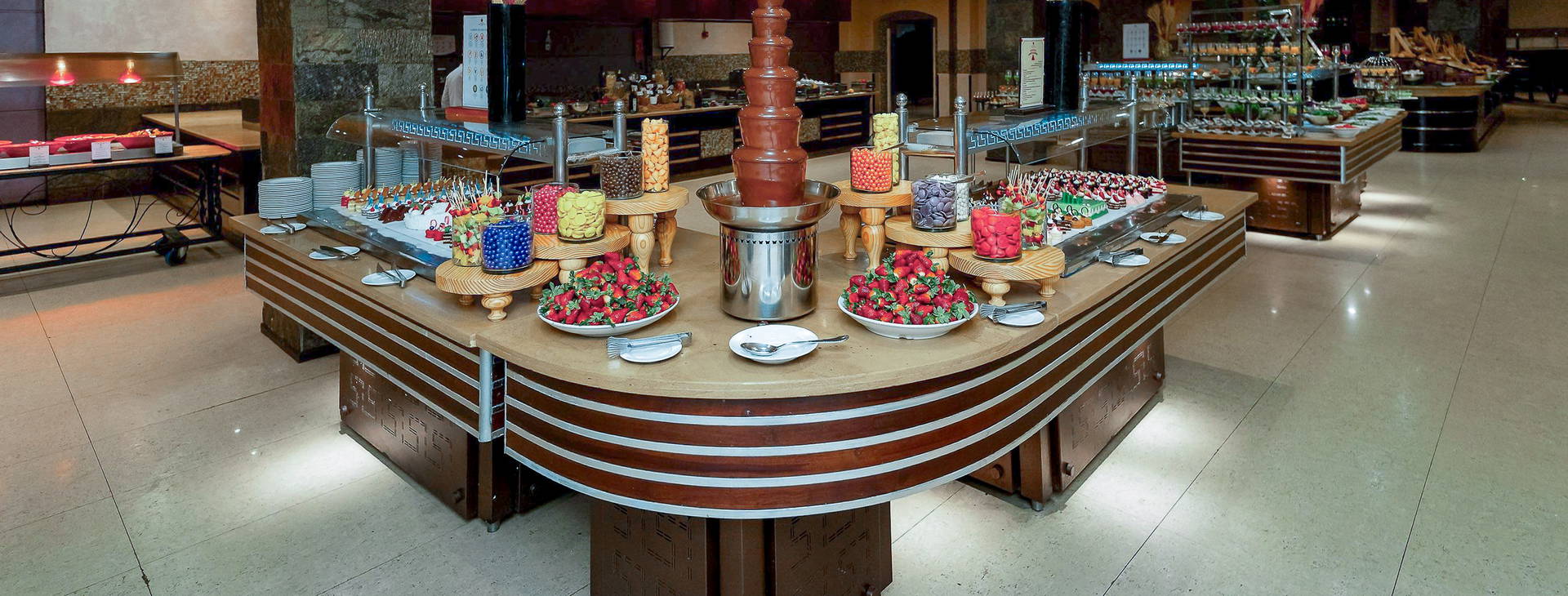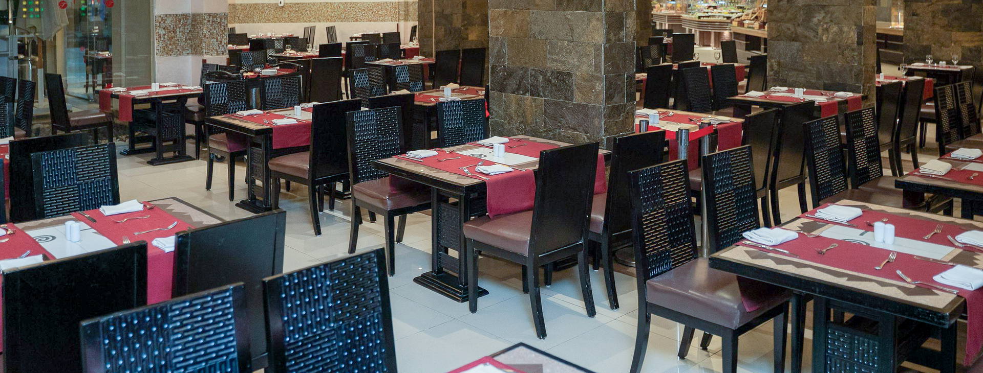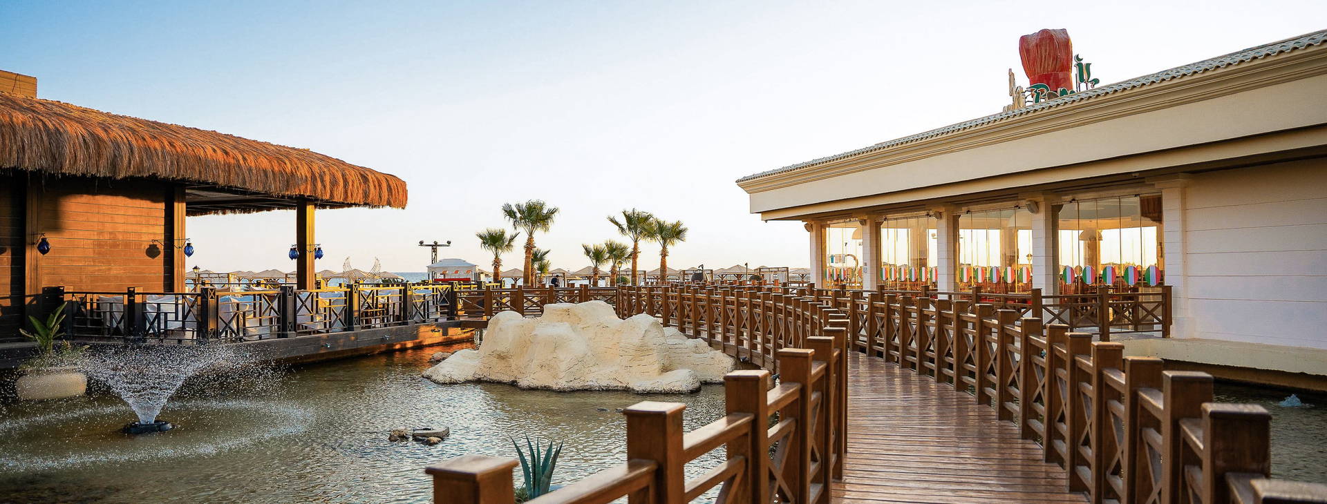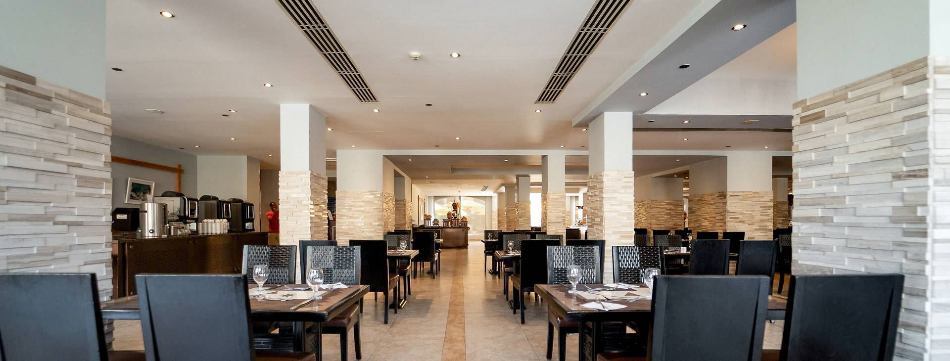 Snídaně (7:00-10:30), oběd (13:00-15:00) a večeře (19:00-22:30) jsou podávány formou bufetu v hlavní restauraci. Kromě toho je během dne k dispozici občerstvení (11:00-12:00; 15:30-17:30), zmrzlina (15:30-17:30) a místní alkoholické a nealkoholické nápoje podávané ve vybraných barech od 10:00-24:00. Kromě toho jedna malá láhev minerální vody denně na pokojích. Jednou během pobytu si můžete pochutnat v jedné z restaurací a'la carte - italské nebo mexické. Za příplatek je k dispozici shisha koutek.