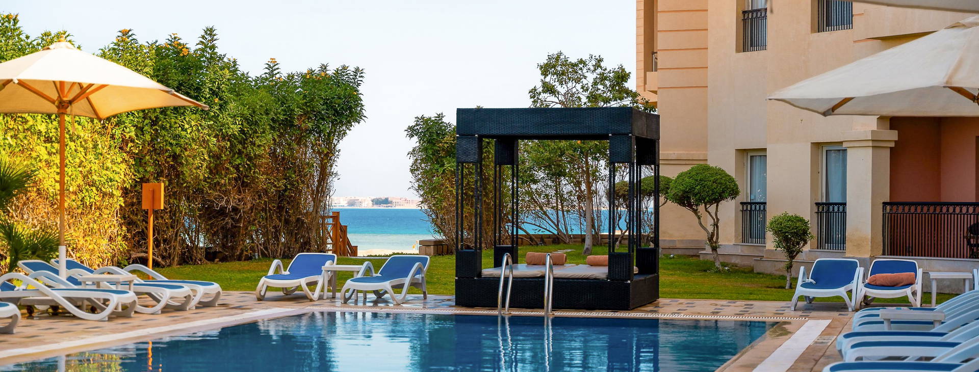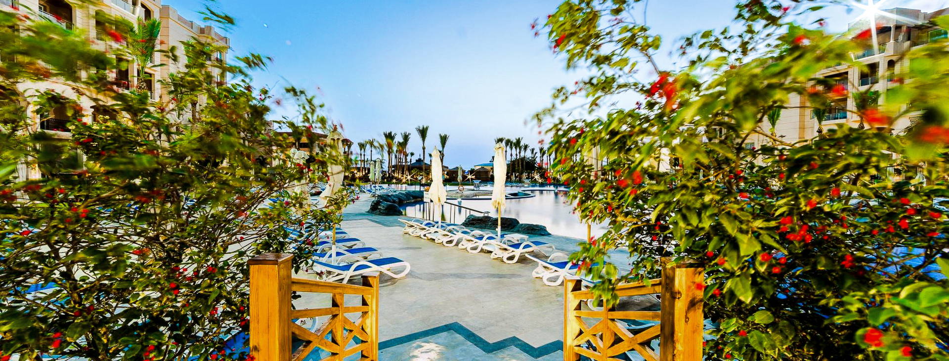 Nedávno dokončený luxusní a komfortní hotel se nachází v jižní části Hurghady - Sahl Hasheesh. Hotel má vlastní písečno-oblázkovou širokou pláž s pozvolným vstupem do moře (doporučujeme ochrannou obuv) a v blízkosti břehu se nachází pěkný korálový útes. Letiště je vzdáleno přibližně 21 km a centrum Hurghady přibližně 25 km.