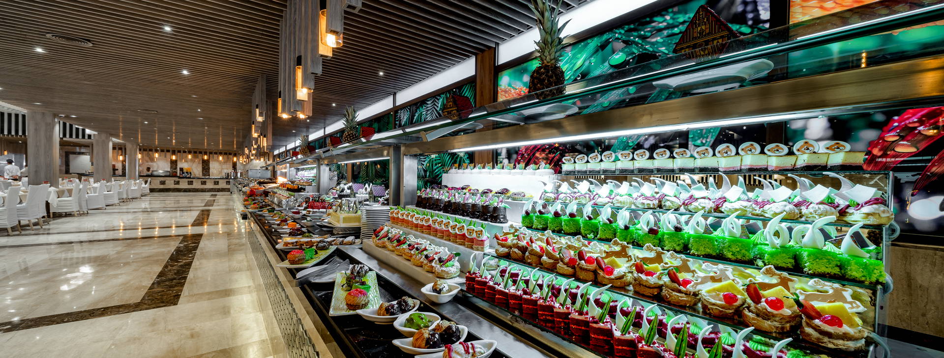 All inclusive: snídaně (7:00-10:00), oběd (13:00-15:00) a večeře (19:00-22:00) podávané formou bufetu v restauraci Sirena. Pozdní snídaně se podává v plážovém baru (10:00-12:00). V plážovém baru Panorama se denně od 11:00-18:00 podává pizza a od 11:00 do západu slunce se v plážovém baru Panorama podává i další občerstvení. Všechny nápoje se podávají ve sklenicích, ve vybraných barech a restauracích se podává minerální voda, nealkoholické nápoje (kromě čerstvých ovocných šťáv), místní pivo, místní víno, místní lihoviny (gin, vodka, whisky, rum, ouzo a brandy) a teplé nápoje, jako je káva, čaj nebo horká čokoláda. Hotel si vyhrazuje právo na změnu rozsahu služeb zahrnutých do formule all inclusive (např. časy podávání).