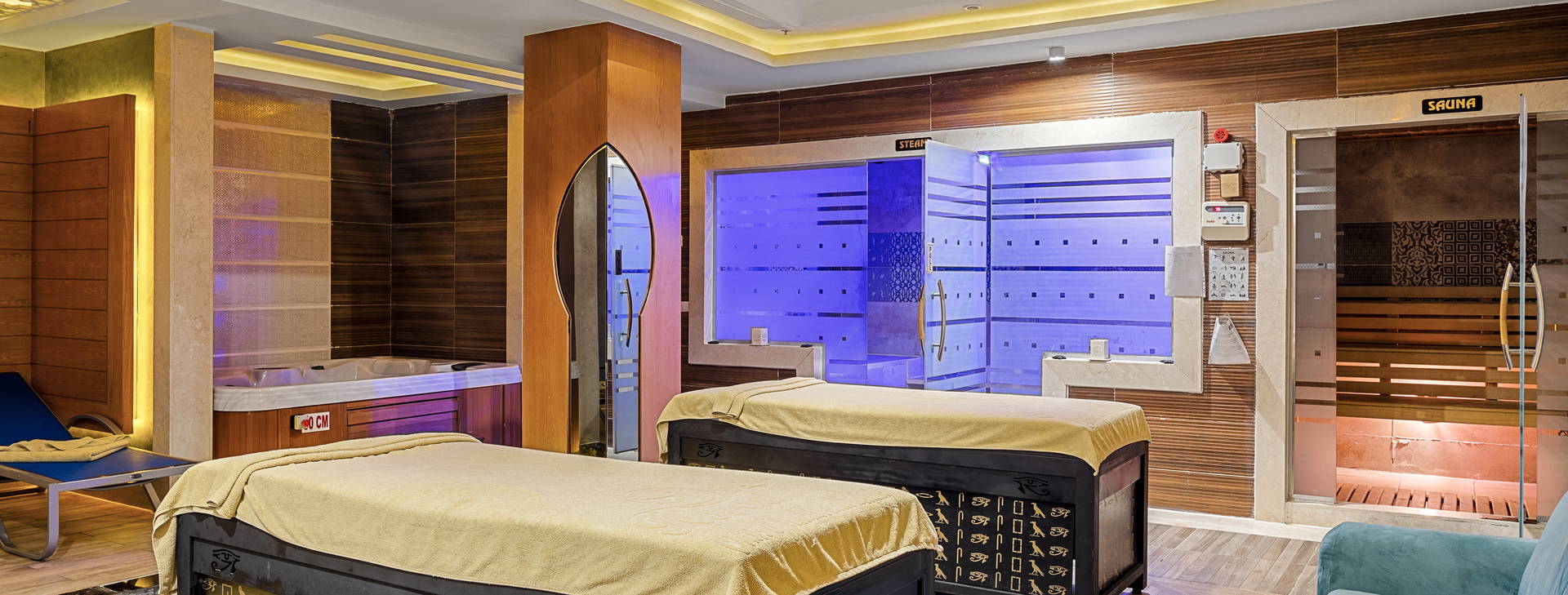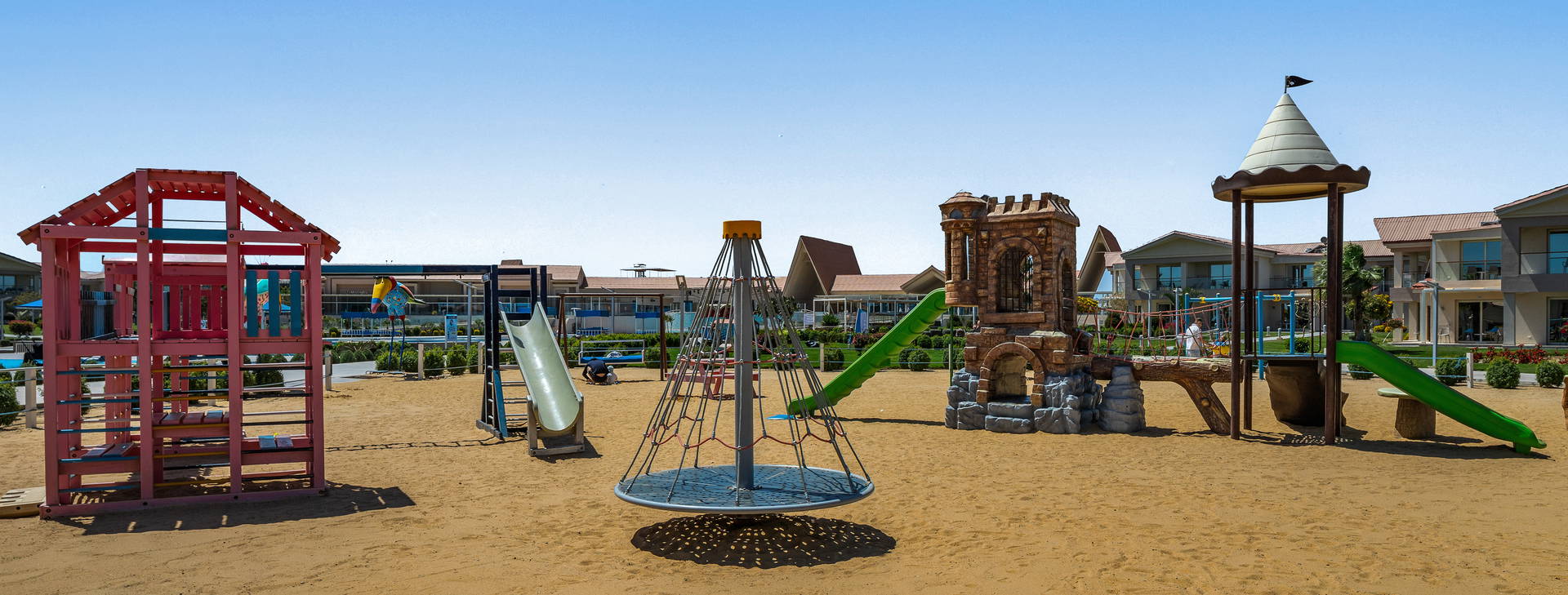 Celodenní animace: sport a hry, aerobik, gymnastika, šipky, boccia, plážový volejbal, basketbal, fotbal a komplex 20 bazénů, z toho 5 bazénů pro děti (hloubka 10-50 cm) s 23 skluzavkami (z toho 11 z nich je určeno pro děti). 2 až 4 bazény jsou v zimní sezóně vyhřívané. Večer místní show. Pro děti: miniklub (s animacemi), brouzdaliště, skluzavky. Tenis (osvětlení a vybavení za příplatek). Za příplatek: wellness procedury a centrum vodních sportů na pláži.
