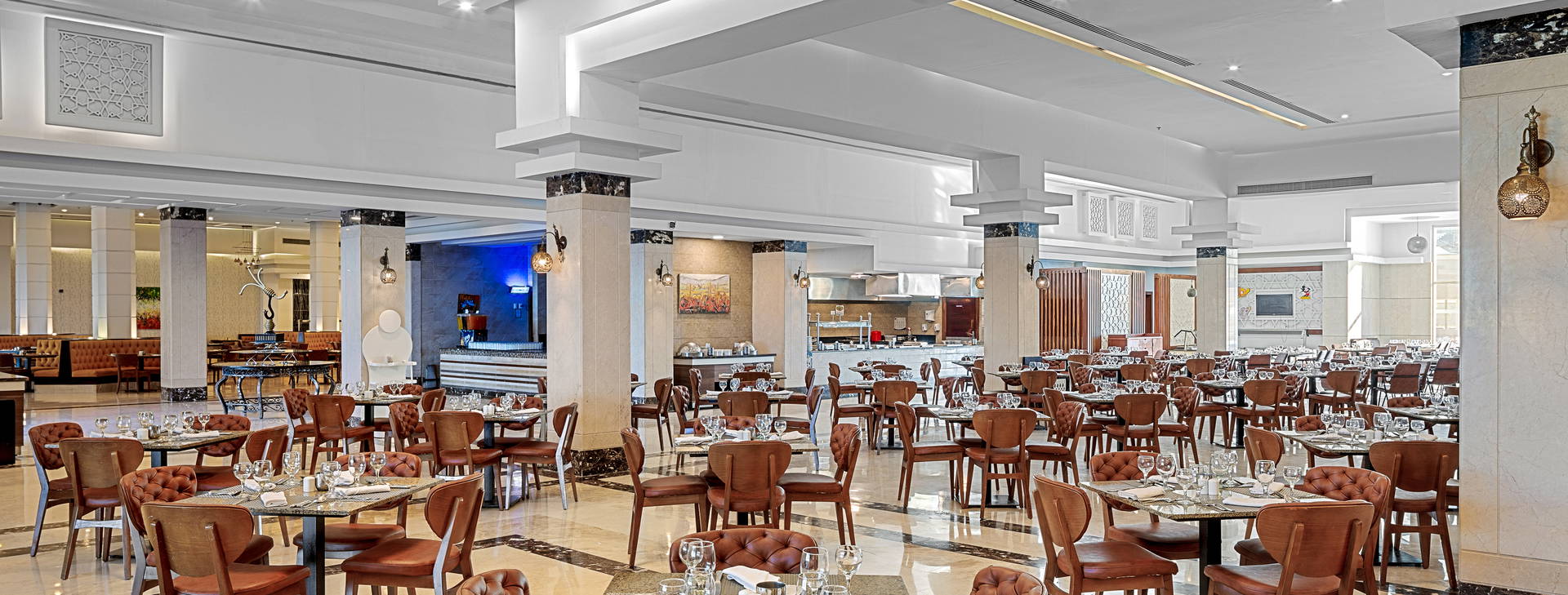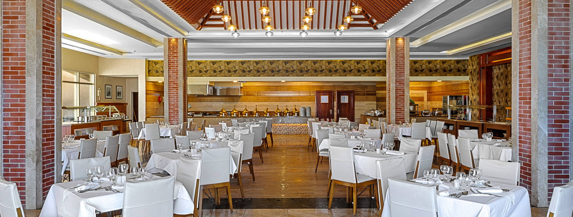 All Inclusive: snídaně (7:00-10:00), oběd (12:30-14:30) a večeře (19:00-21:30) podávané formou bufetu. Navíc: pozdní snídaně (10:00-11:00), občerstvení a zmrzlina (12:30-16:00) a večerní občerstvení (22:00-24:00) ve vybraných restauracích a barech. Místní alkoholické a nealkoholické nápoje (10:00-24:00) ve vybraných restauracích a barech. Za příplatek: nápoje, nápoje v lahvích a plechovkách a dovážené lihoviny. Hotel si vyhrazuje právo změny rozsahu služeb zahrnutých v programu All Inclusive (např. času servírování pokrmů).