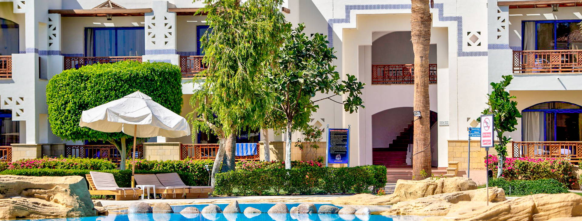 Hotel se nachází na malé soukromé hotelové pláži se vstupem do moře z mola, v blízkosti jednoho z nejkrásnějších korálových útesů v Šarm aš-Šajchu. Lehátka a slunečníky na pláži jsou k dispozici zdarma.