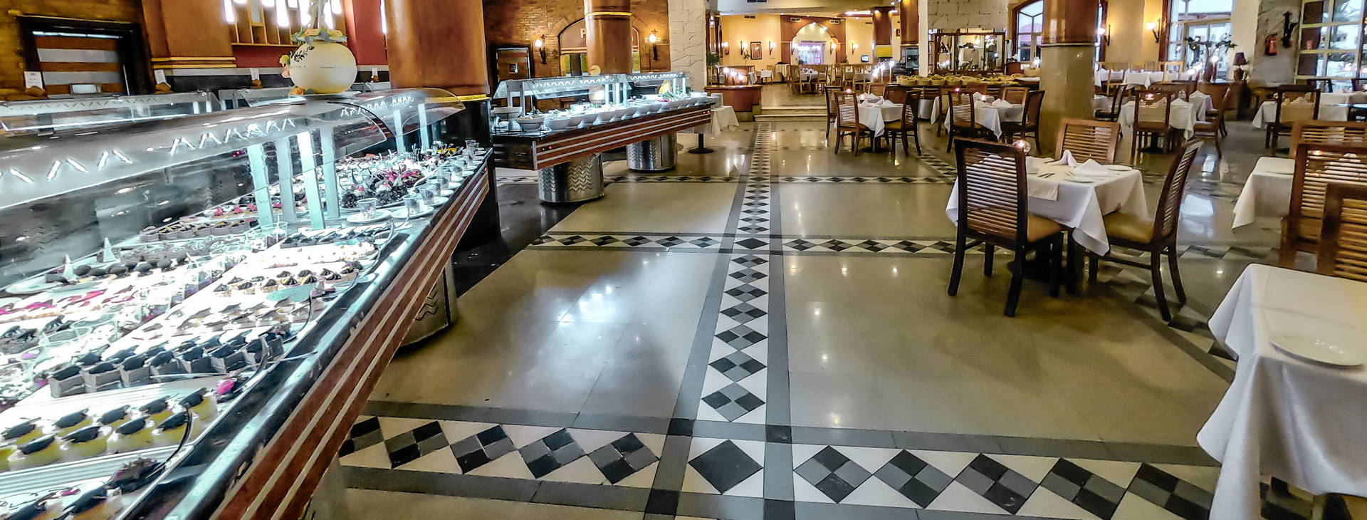 Nabídka Ultra All Incusive zahrnuje: snídani (7:00-10:00), oběd (12:30-14:30) a večeři (18:30-21:00) v hlavní restauraci Royal. Dále 3 restaurace a la carte fungující od 18:30 do 20:30: Camelo (italská), Oriental a Fish Market (vyloučeno z nabídky all inclusive - hosté obdrží nevratnou poukázku v hodnotě 15 USD, kterou lze využít jednou za pobyt při rezervaci). Občerstvení v restauraci Sunrise (12:30 - 16:00), Pizza and Pasta (12:00 - 21:00), Aqua Park (12:30 - 15:30), Lobby Bar (10:00 - 21:30 a 21:30 - 00:00) a Royal Bar (10:00 - 17:00). Místní alkoholické a nealkoholické nápoje se podávají v Lobby baru (24 hodin), v barech Sunrise Beach, Sunset Pool, Slide Pool a Royal Beach (10:00 - 17:00), Sport baru (12:00 - 00:00), Terrace (09:00 - 00:00) a Aqua View (10:00 - západ slunce). Víno se podává pouze v hlavní restauraci v době oběda a večeře.