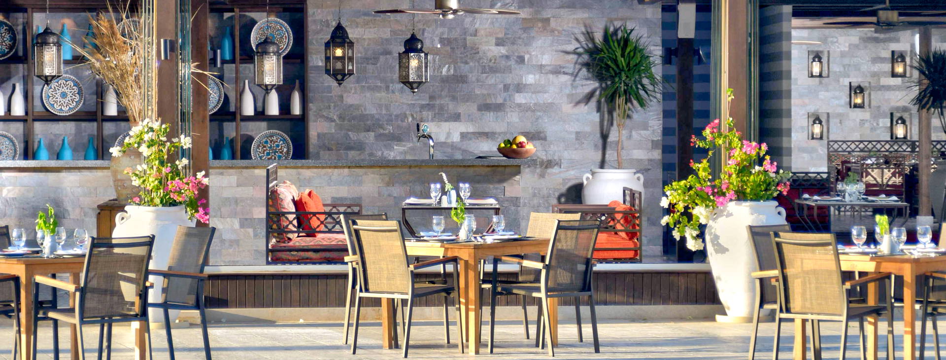 Místní nealkoholické a alkoholické nápoje se podávají v mnoha barech: Hama - japonská kuchyně, Limoni - italská kuchyně, Amoura - libanonská kuchyně, Sanafir - pokrmy z mořských plodů (pokrmy z humra za příplatek), La Maison - středomořská kuchyně.