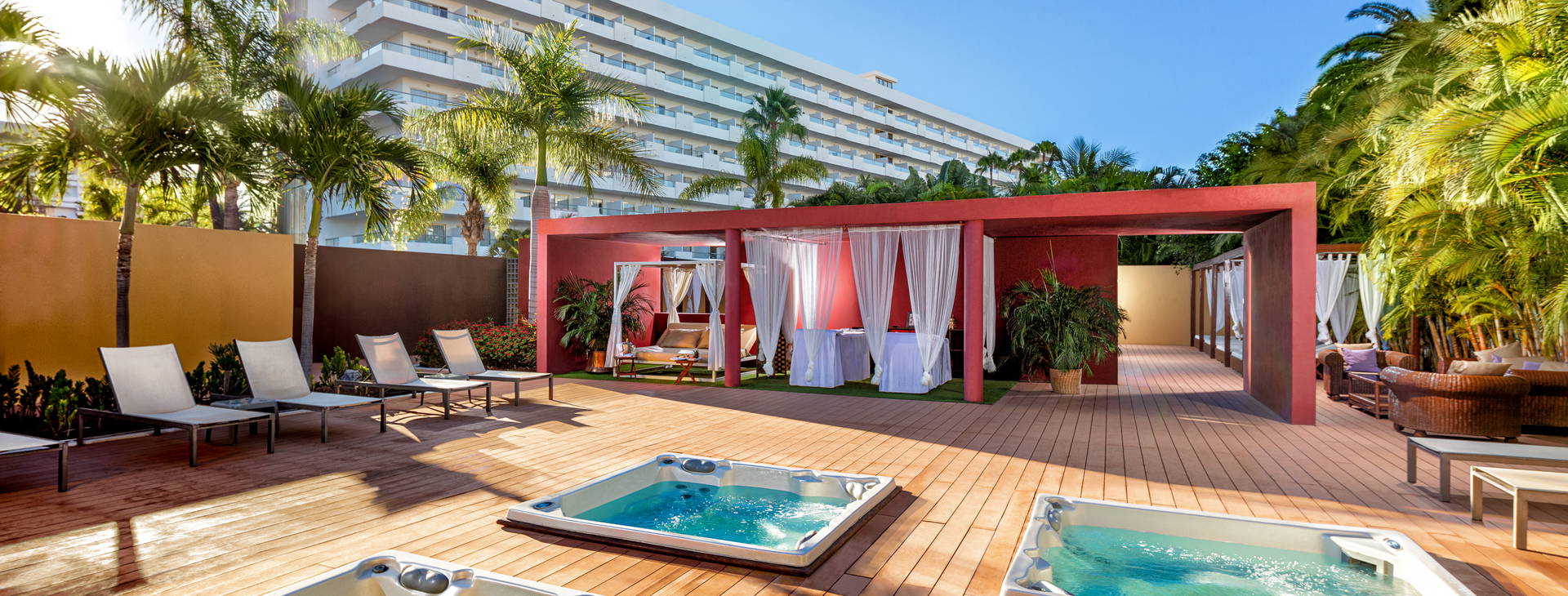Recepce, výtahy, bufetová restaurace, bary, bazén a brouzdaliště (sladká voda, 1 vyhřívaný v zimě), sluneční terasa se slunečníky a lehátky. Hotel poskytuje plážové osušky - za poplatek (cca 10 EUR).