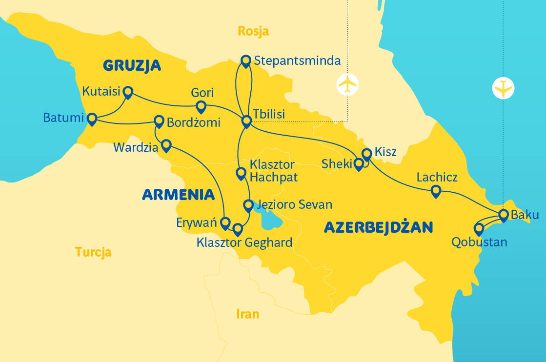 Název zájezdu v polském jazyce: Gruzja, Azerbejdżan, Armenia - Czas na Kaukaz