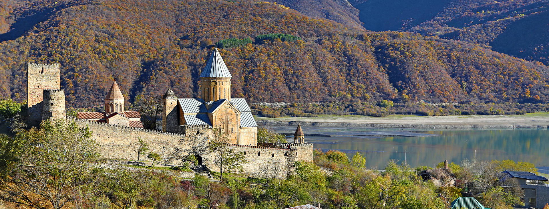Po snídani výlet směrem k Velkému Kavkazu klikatou horskou cestou. Zastávka u vyhlídky na pevnost Ananuri u Žinvalského jezera. Poté přejezd přes Křížový průsmyk do Stepantsmindy (dříve Kazbegi). Při dobrém počasí se otevírá výhled na vrchol Kazbek (5033 m n. m.). Přesedneme do terénních vozidel a vyjedeme ke kostelu Cminda Sameba. Tato ikonická stavba ze 14. století patří k nejfotografovanějším místům v Gruzii. Během výletu bude podáván oběd. Návrat do hotelu v okolí Tbilisi, nocleh. Večer možnost fakultativní večeře s folklórním programem v tradiční gruzínské restauraci (za příplatek cca 50 EUR/os.). (V tento den není večeře v hotelu). (Trasa cca 320 km)