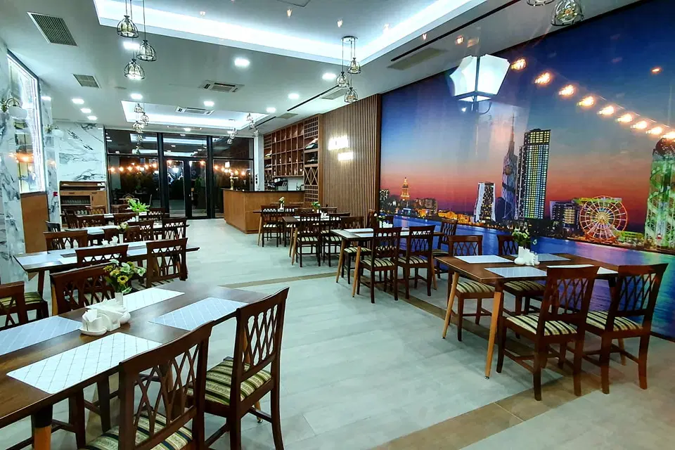 24h recepce, restaurace Aqua Room a bar s gruzínskou a evropskou kuchyní.