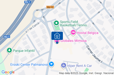 Hotel Globales Mimosa patří do známého hotelového řetězce Globales. Nachází se nedaleko od centra města Palmanova, kde je mnoho restaurací, obchodů a barů. Autobusová zastávka je vzdálena asi 500 m od hotelu - pravidelné spojení s hlavním městem ostrova. Letiště Palma de Mallorca je vzdáleno cca 27 km. V okolí jsou tři golfová pole.