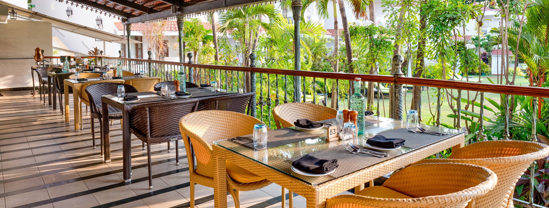 All Inclusive: snídaně (07:30-10:30), oběd (12:30-15:00), večeře (19:30-22:30) podávané formou bufetu v restauraci Chutney. Občerstvení během dne (11:00-12:00 a 16:00-17:30), místní nealkoholické a alkoholické nápoje (11:00-23:00). A'la carte restaurace: Mango Terrace podávající indickou kuchyni a Forrest podávající grilovaná jídla jsou k dispozici za poplatek, nutná předchozí rezervace.