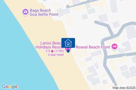 Hotel se nachází ve městě Baga, přímo na pláži Baga Beach. V okolí se nachází řada restaurací a barů s místní kuchyní. Do centra Calangute jsou to přibližně 2 km. Na mezinárodní letiště MOPA v Manoharu cca 25 km.