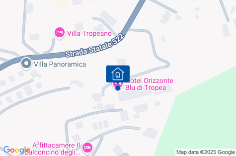 Hotel se nachází v klidné vesničce Santa Domenica di Ricadi na kopci, jen asi 3 km od známého města Tropea. Do historického centra půvabné Tropey, kde se nachází řada pamětihodností, obchodů, kaváren a restaurací, jezdí několikrát denně zdarma hotelový autobus (za poplatek po 19:00 hod. cca 1 EUR/osoba). Na letiště Lamezia di Terme je to cca 60 km. Přímo v hotelu je nutné uhradit turistickou taxu cca 2 EUR/osoba/den.