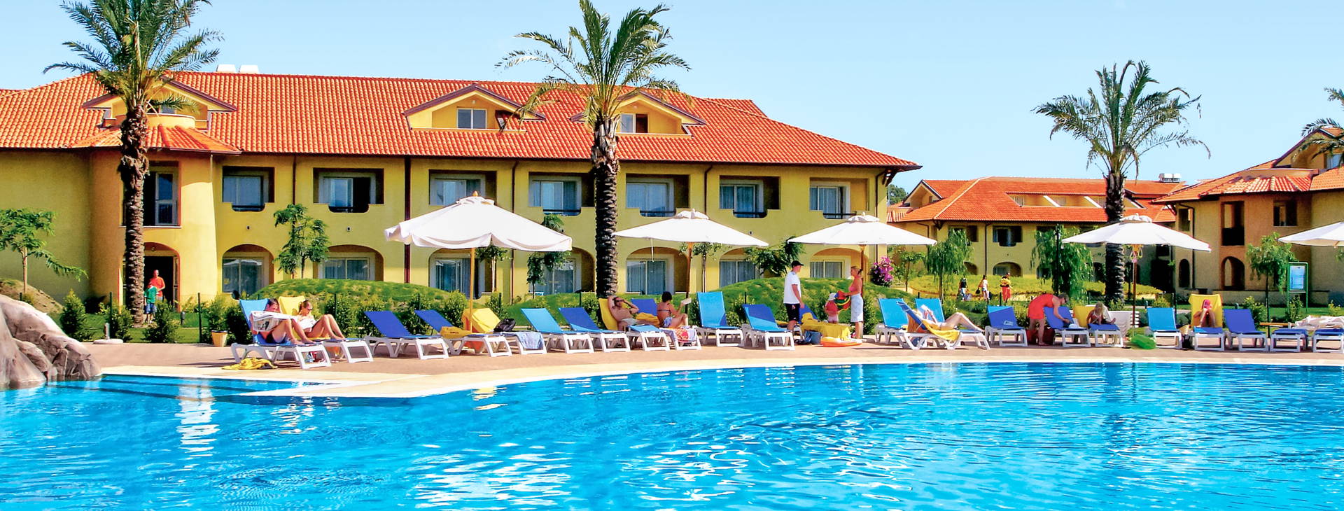 Recepce, restaurace, pizzerie Paparazzi a pizzerie na pláži, 3 bary: hlavní bar (10:00-24:00), bar na pláži (10:00-18:00), bar u bazénu. 2 sladkovodní bazény (aktivní a relaxační), brouzdaliště, lehátka a slunečníky u bazénu zdarma. Osušky k dispozici po složení zálohy ve výši cca 11 € a k úhradě cca 16 €/týden (s denní výměnou). Dále: obchod, lékařská pomoc v areálu hotelu.