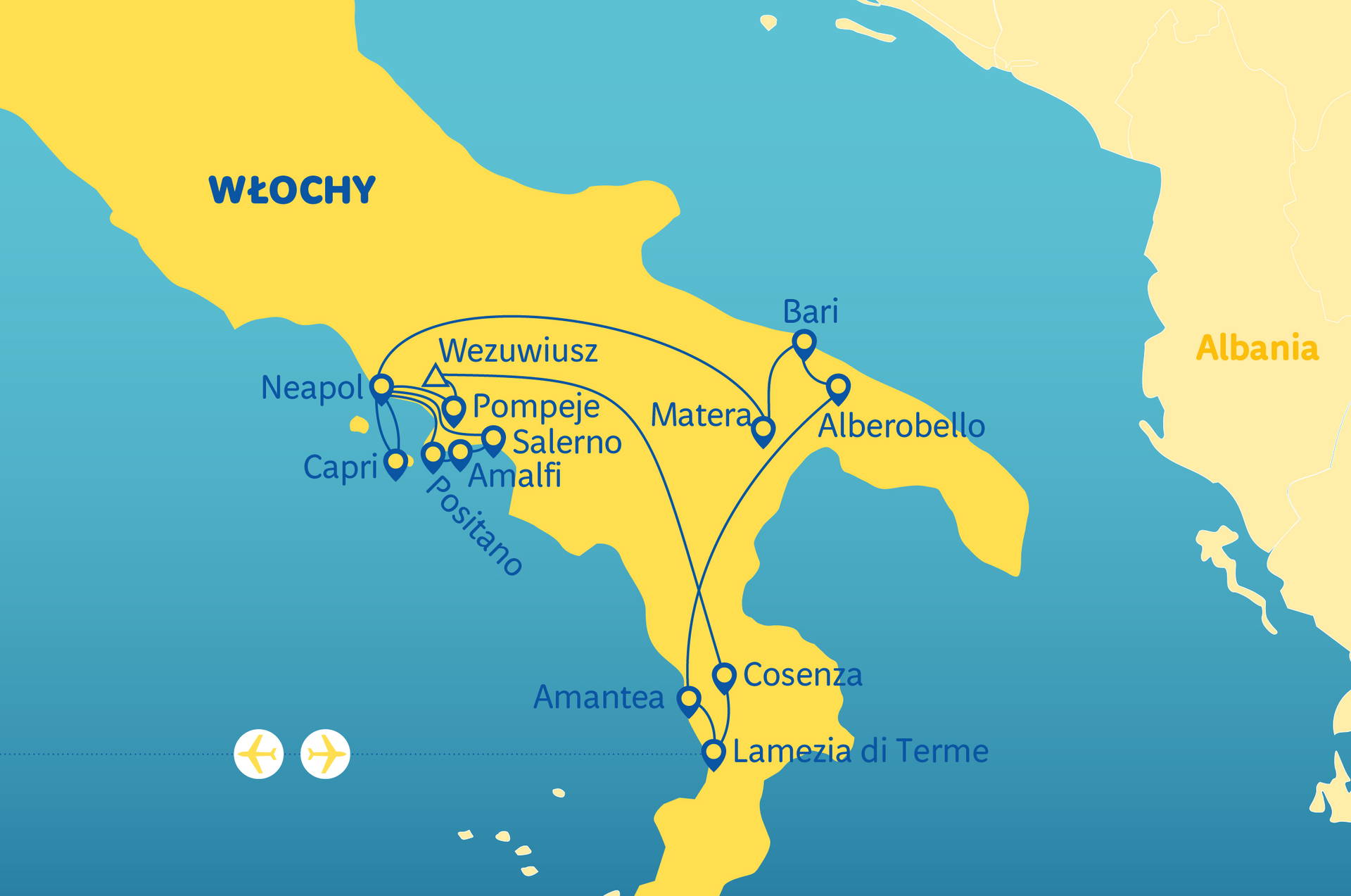 Itálie - O Sole Mio! - 8 nebo 15 dní • Amalfinské pobřeží - nejkrásnější kout Kampánie • Neapol - neoficiální hlavní město jihu a pizza • trulle v Alberobello • Bari - město královny Bonny • Matera - neobyčejné město • Caserta – Versailles jihu • Pompeje – ztracené starověké město a Villa Misteri • Vesuv – spící sopka • luxusní Capri • pro zájemce další týden pobytu v Kalábrii